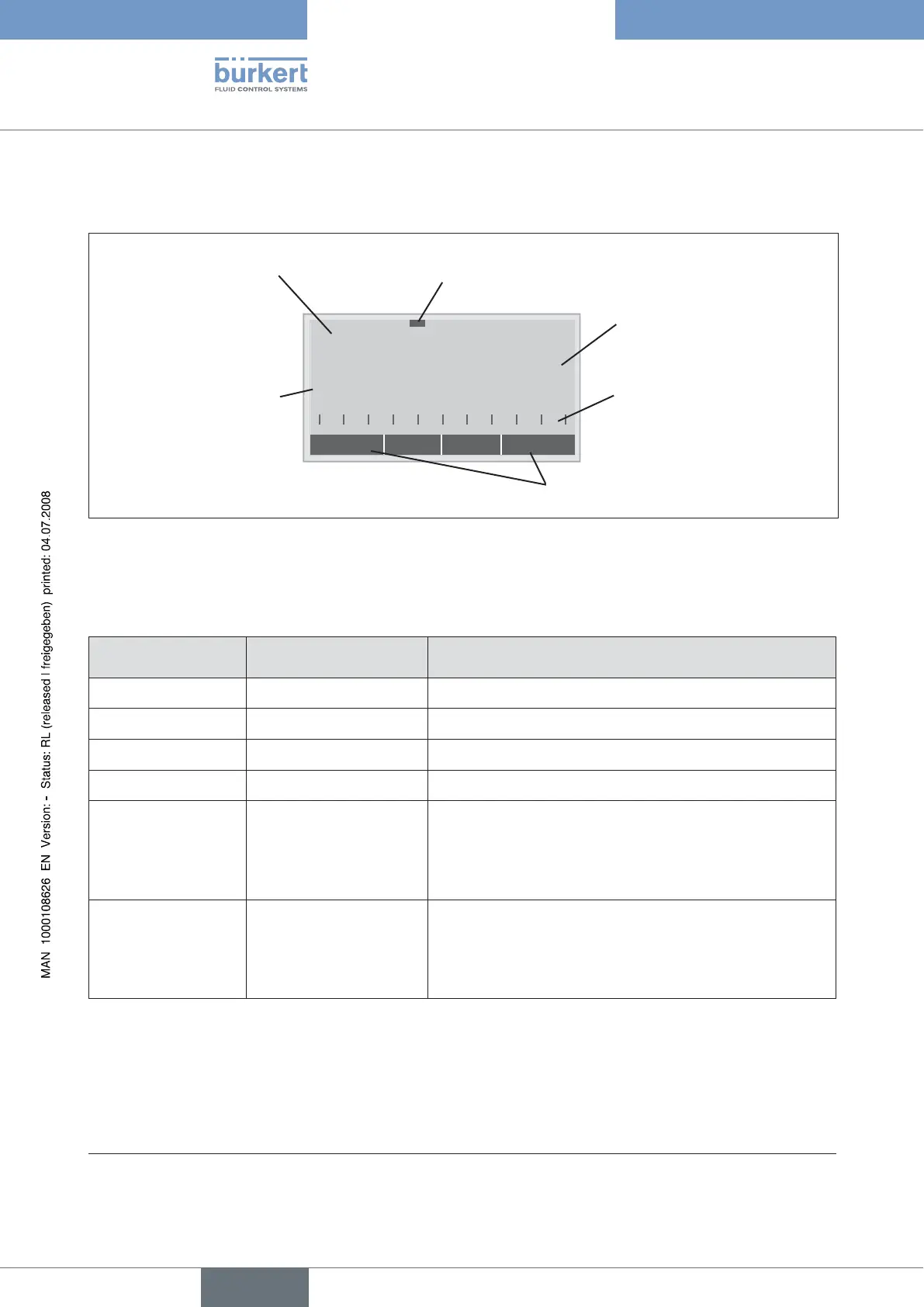 The following representation describes the information on the display: