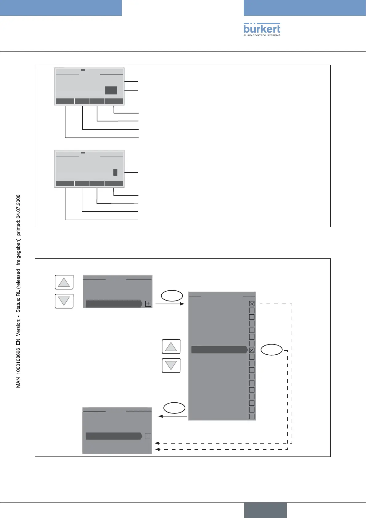 Burkert 8692 - Principle of Including Auxiliary Functions in the Main Menu; Auxiliary Functions