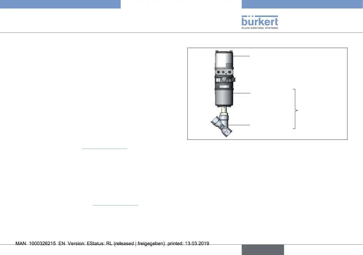 Fig. 1: Structure, type 8692/8693 with process valve