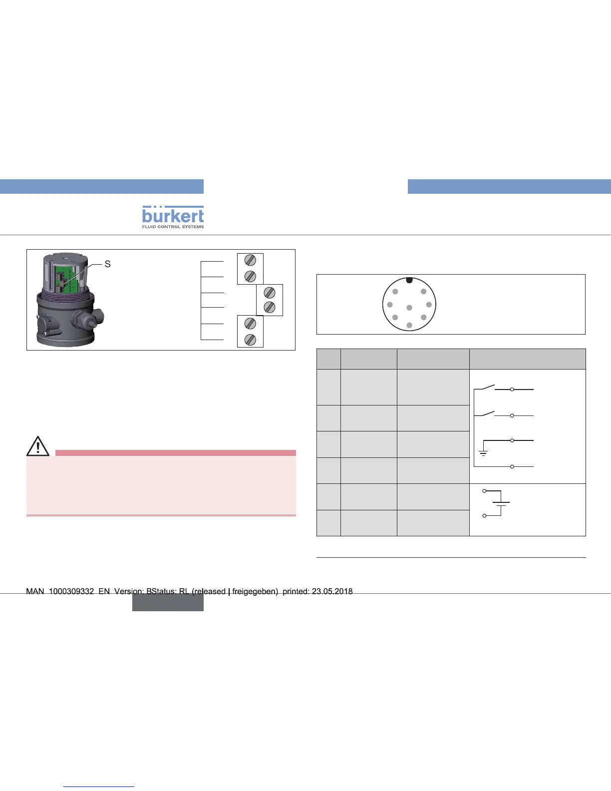 Tab. 6: Pin assignment with 3-wire proximity switches