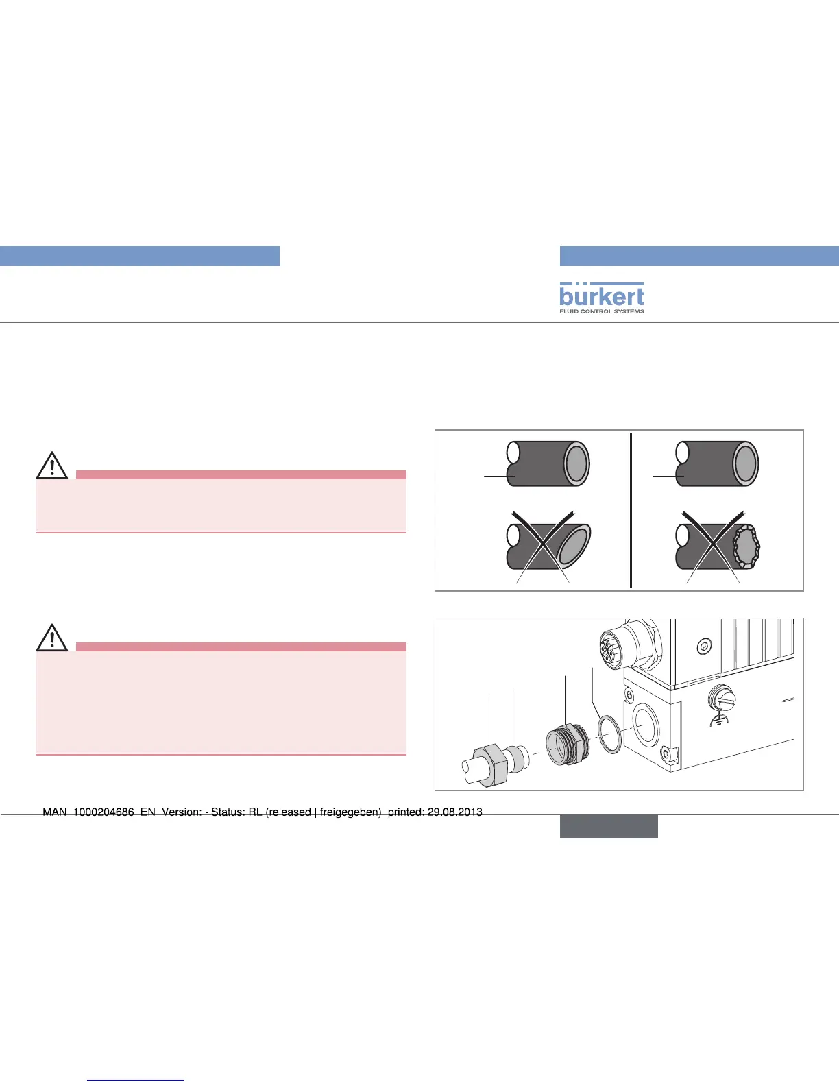 On request, the device may be supplied with the fluid connections fitted.