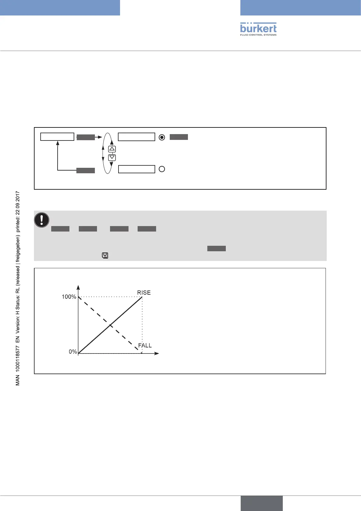 If the Fall function is selected, the description of the arrow keys (on the display) changes in the MANUAL