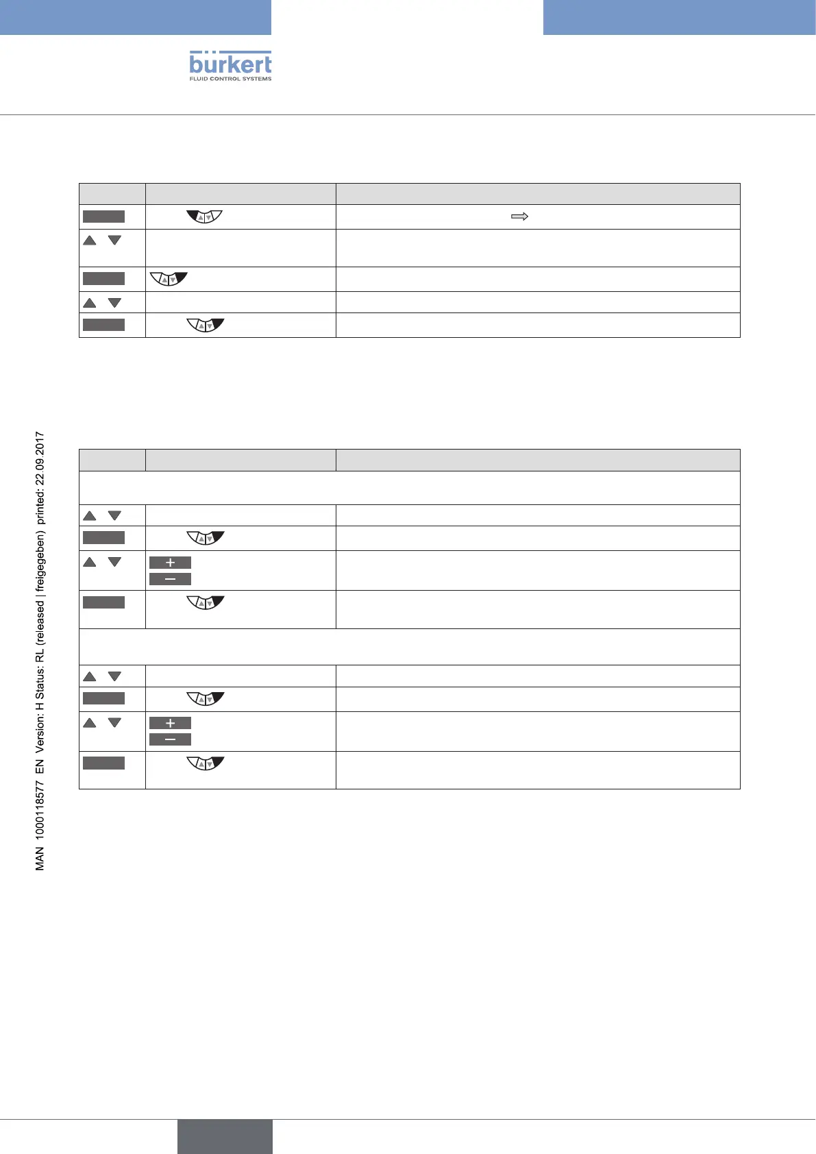 Table 60: OUT BIN1 / OUT BIN2; setting value for POS.Dev or POS.Lim-1/2