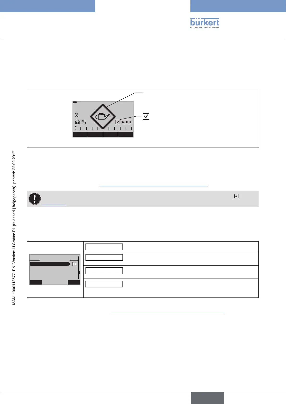 The optional function DIAGNOSE can be used to monitor the state of the valve. If there are deviations from the