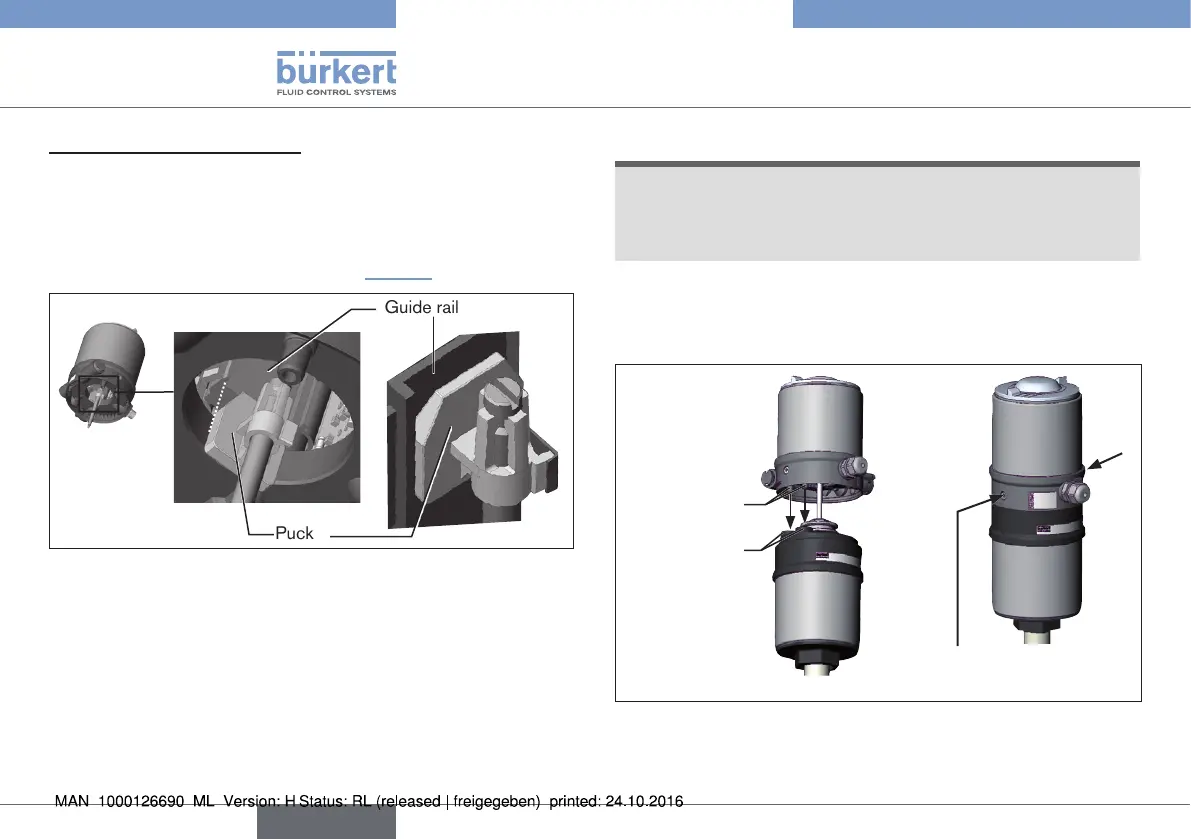 1. the puck engages in the guide rail of the Remote