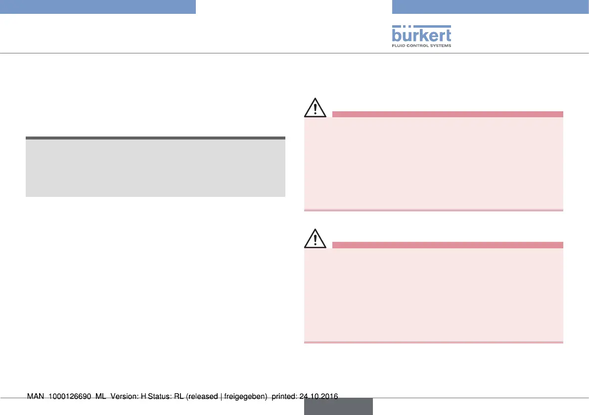 Verletzungsgefahr durch hohen Druck in Anlage/Gerät.