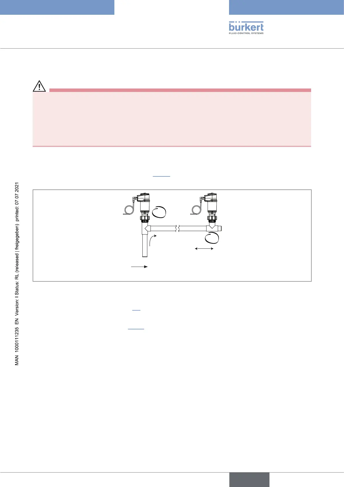 ▶ Before any intervention in the installation, stop the circulation of fluid, cut off the pressure and drain the pipe.