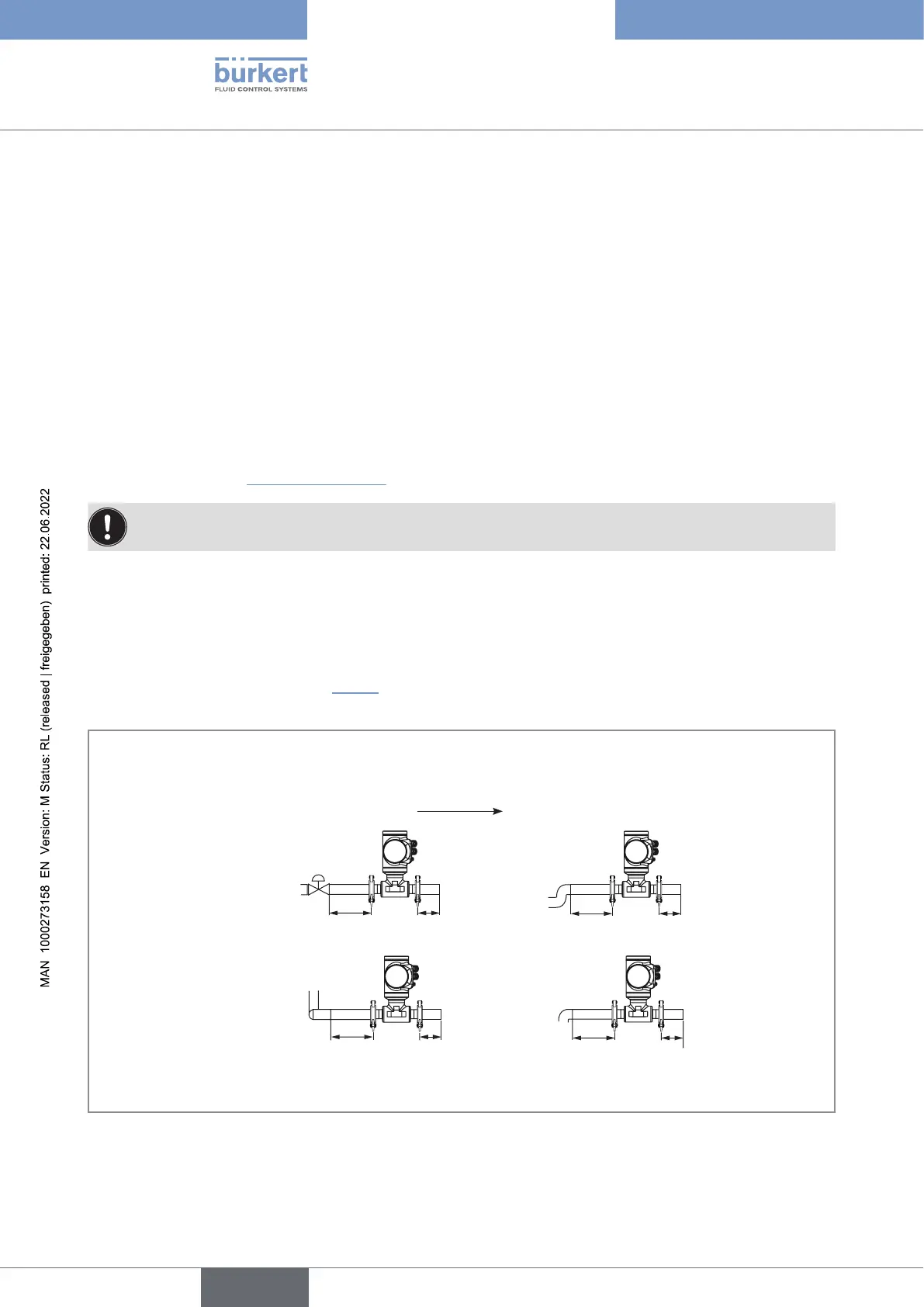 pipe direction, observe the straight downstream distances depending on the design of the pipes. Refer