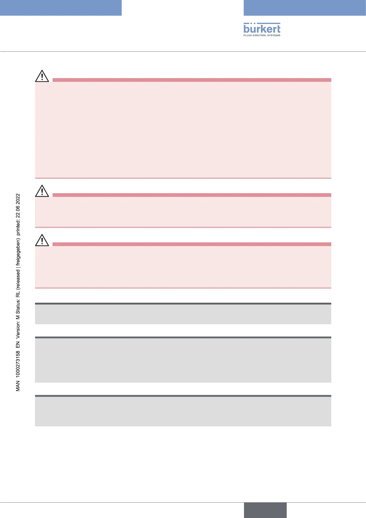 ▶ Guarantee a set or controlled process restart after carrying out any intervention on the device.