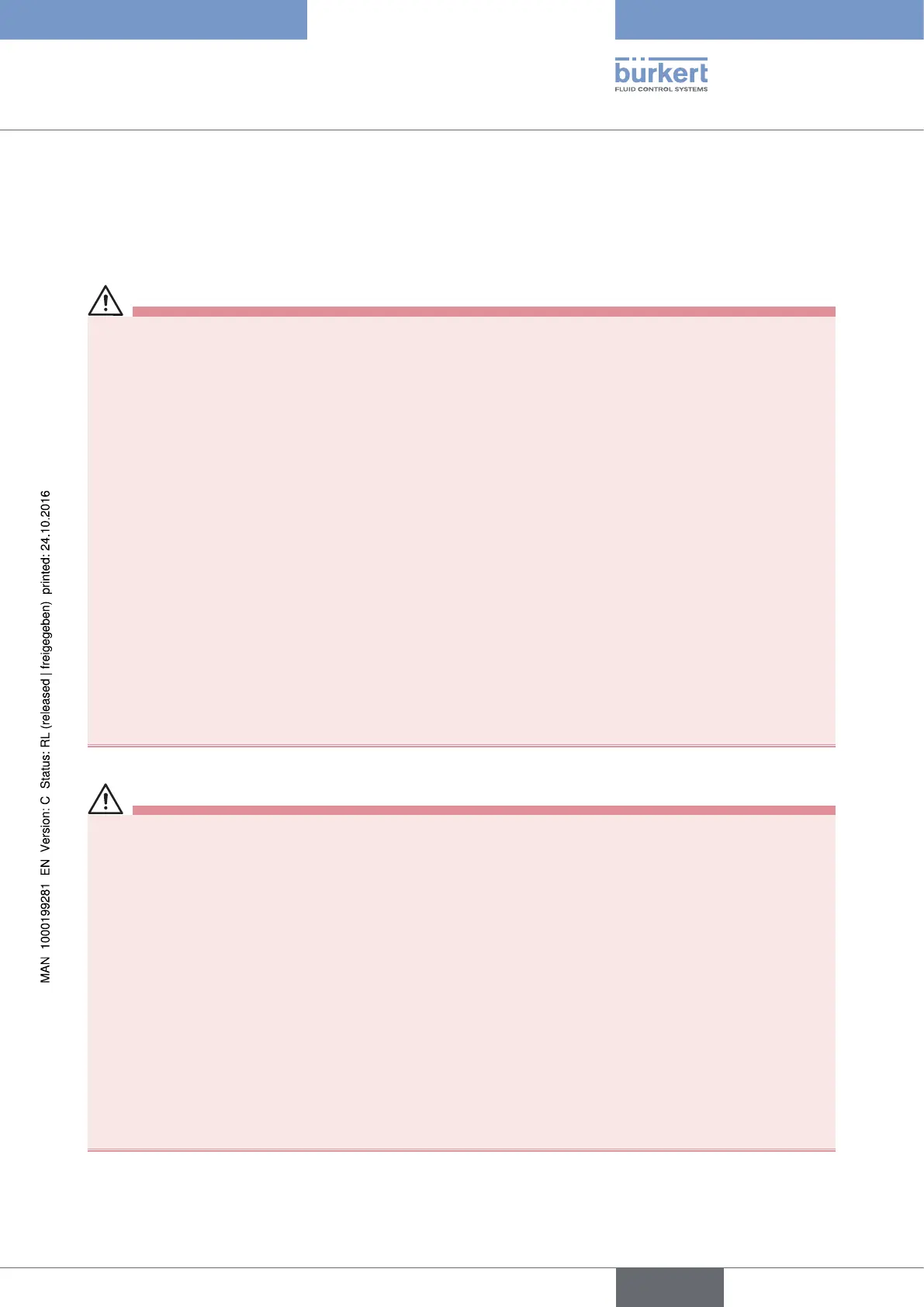 ▶ Stop the circulation of fluid, cut off the pressure and drain the pipe before loosening the process connections.