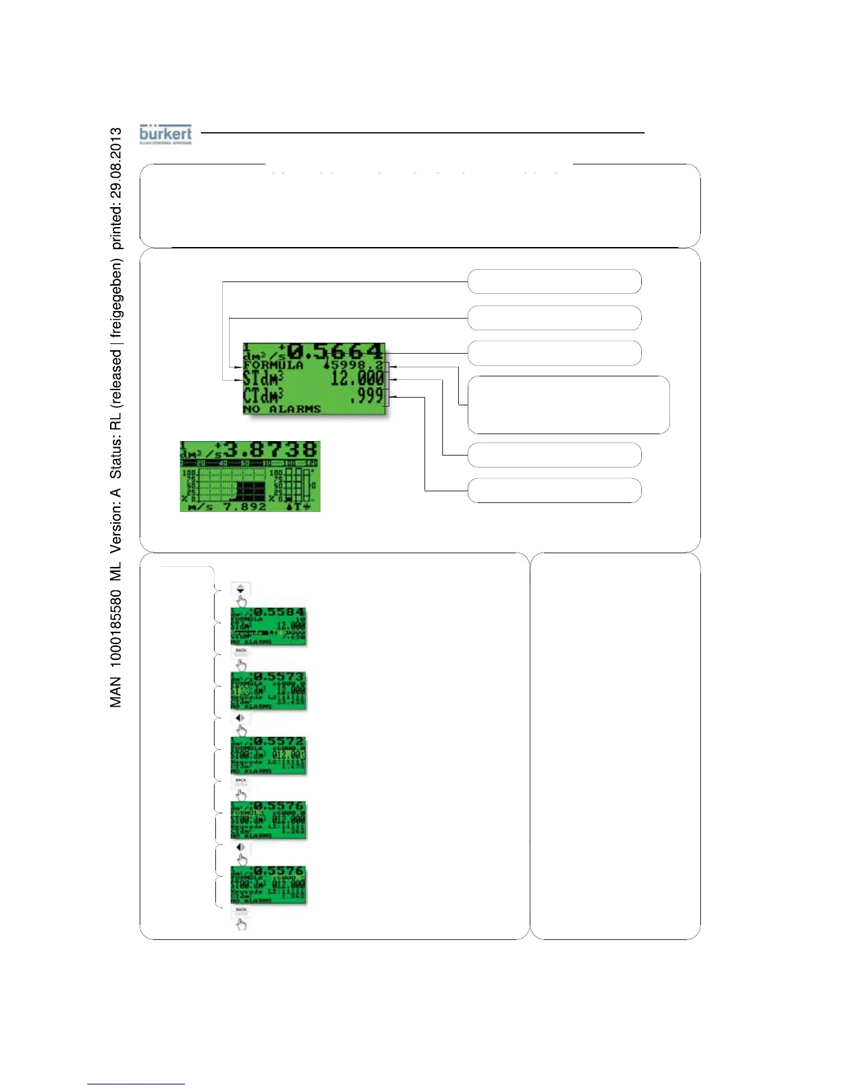 x Troisième barre : tendance de la fluctuation de la mesure, comme une mesure de débit normale.