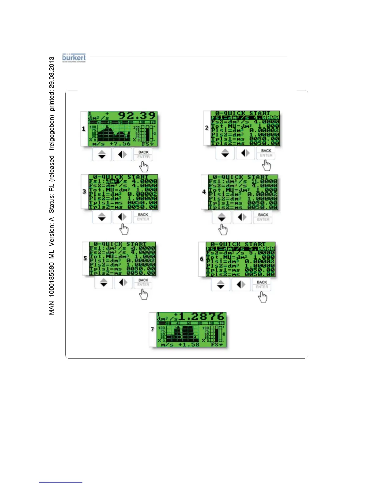 EXAMPLE: modifying the full scale value from 4dm³/s to 5dm³/s,