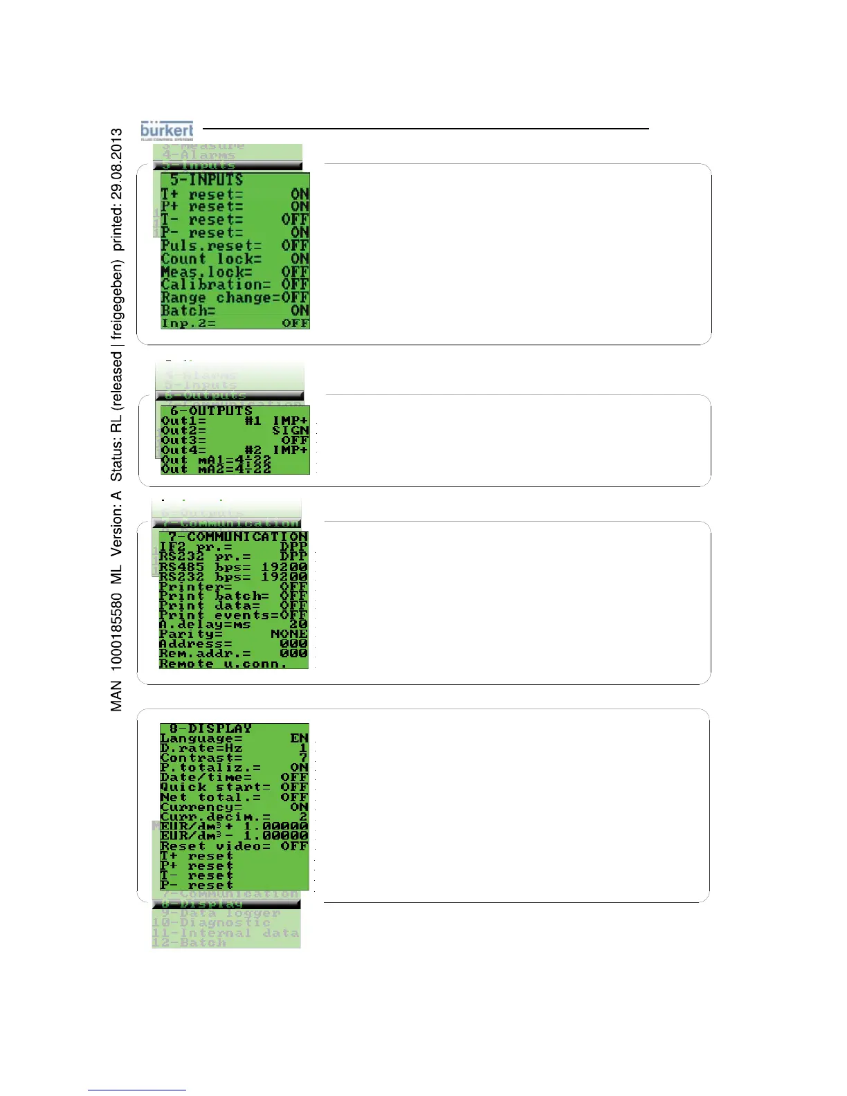 7.3 Speed of the RS485 output (possible choices: 4800, 9600, 19200, 38400 bps)