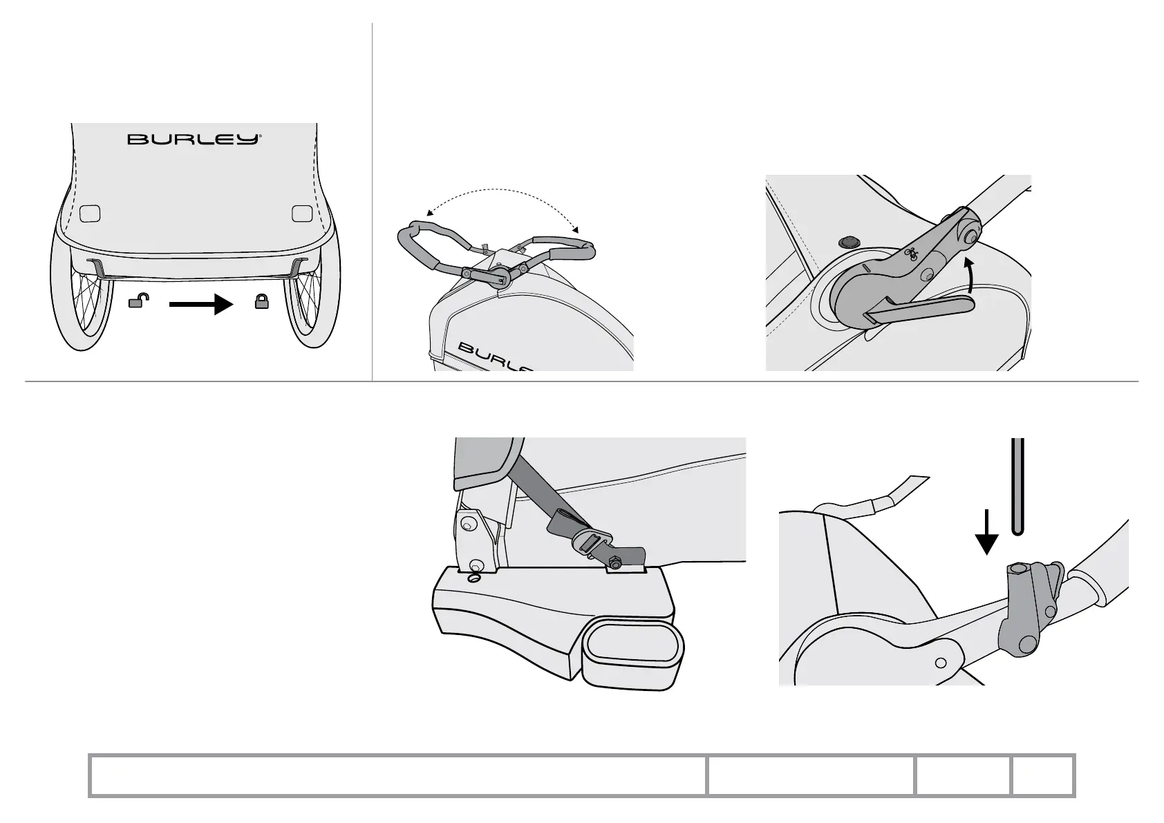 2. Modo de paseo / trote: la barra de soporte puede girarse para servir como manillar mientras el remolque se encuentre en modo