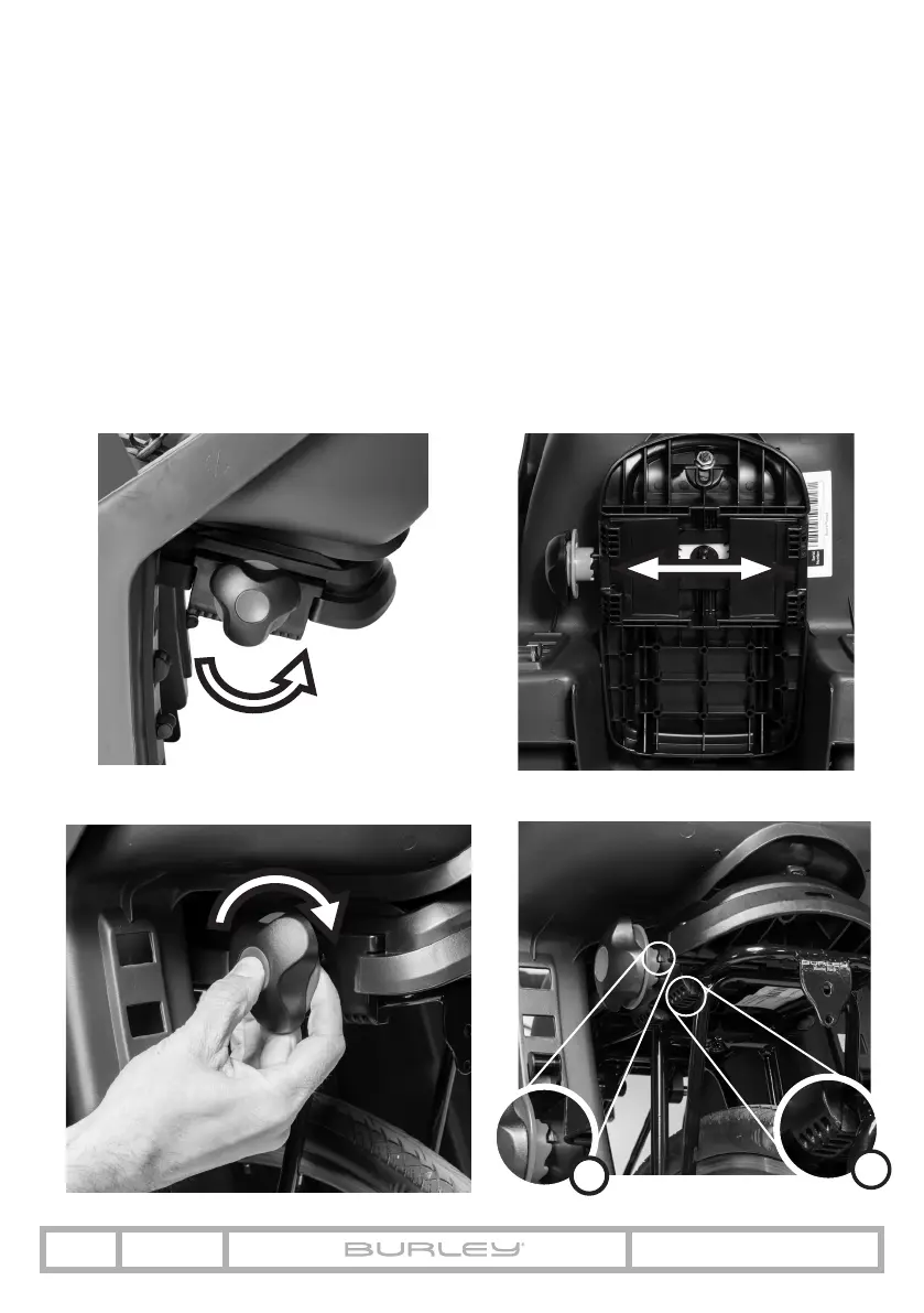 4. Siga girando la perilla de ajuste en el sentido de las agujas del reloj hasta que el asiento infantil