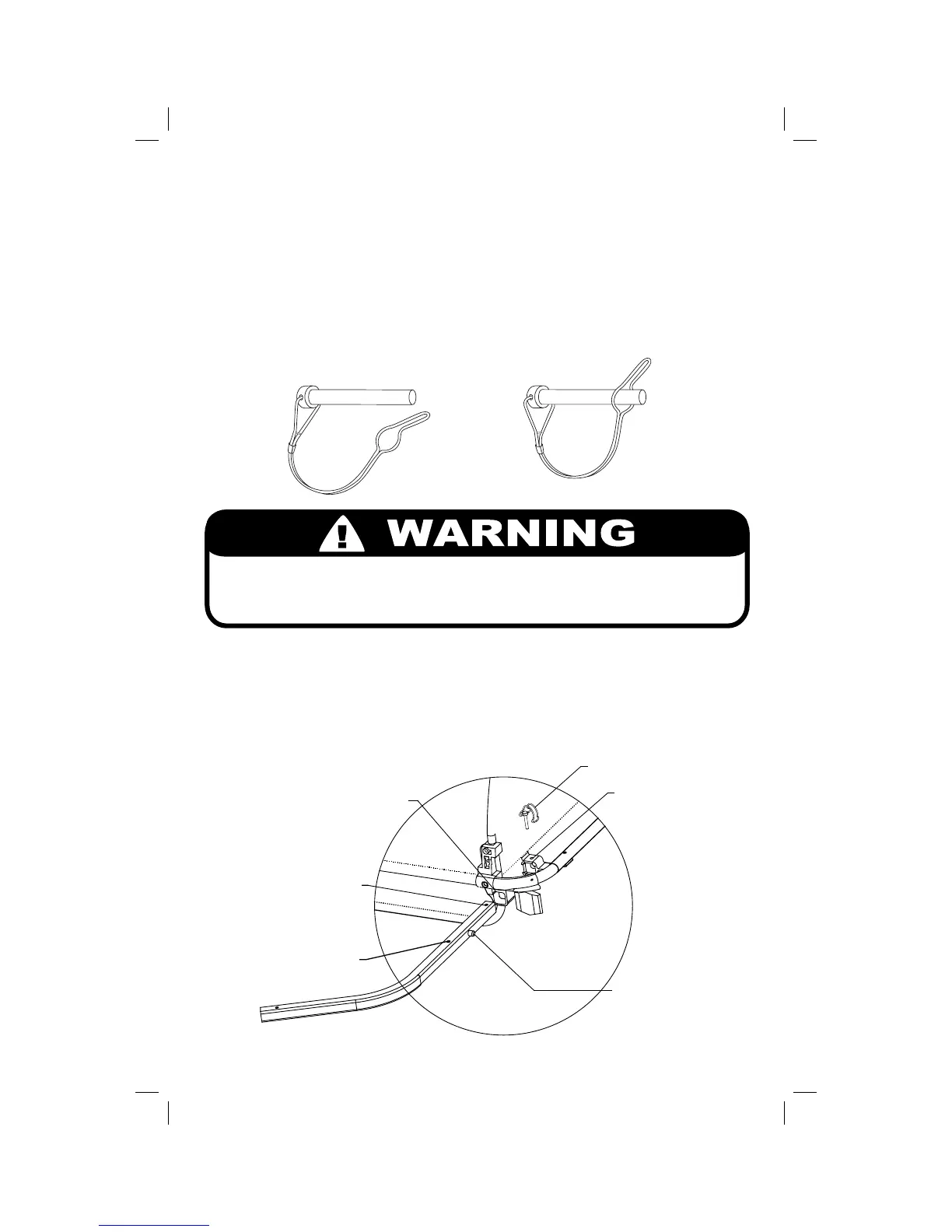 Both safety pins must be locked in place before using trailer, oth er wise