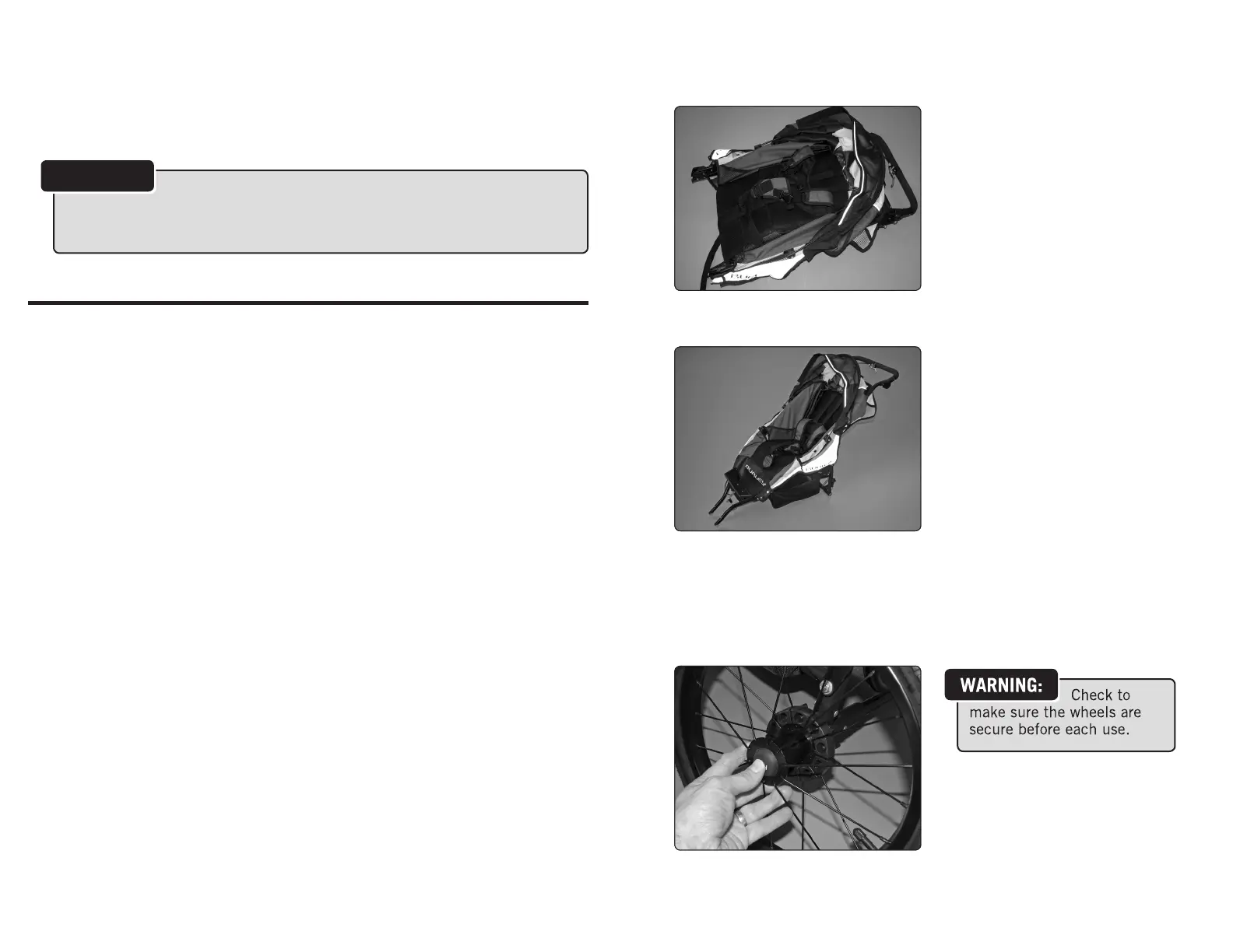 wheel axle into the stroller frame. Push wheels all the way in until they lock.