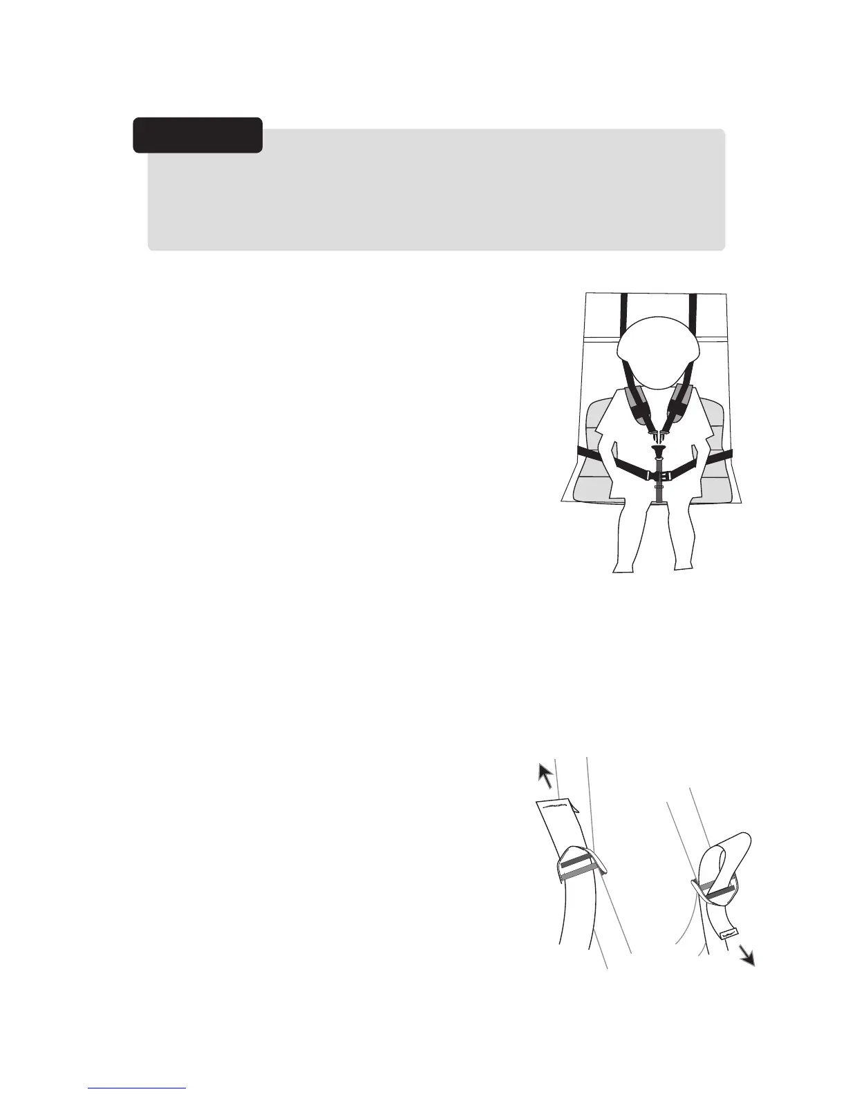 7. Snap shoulder straps into the Y-buckle, with the