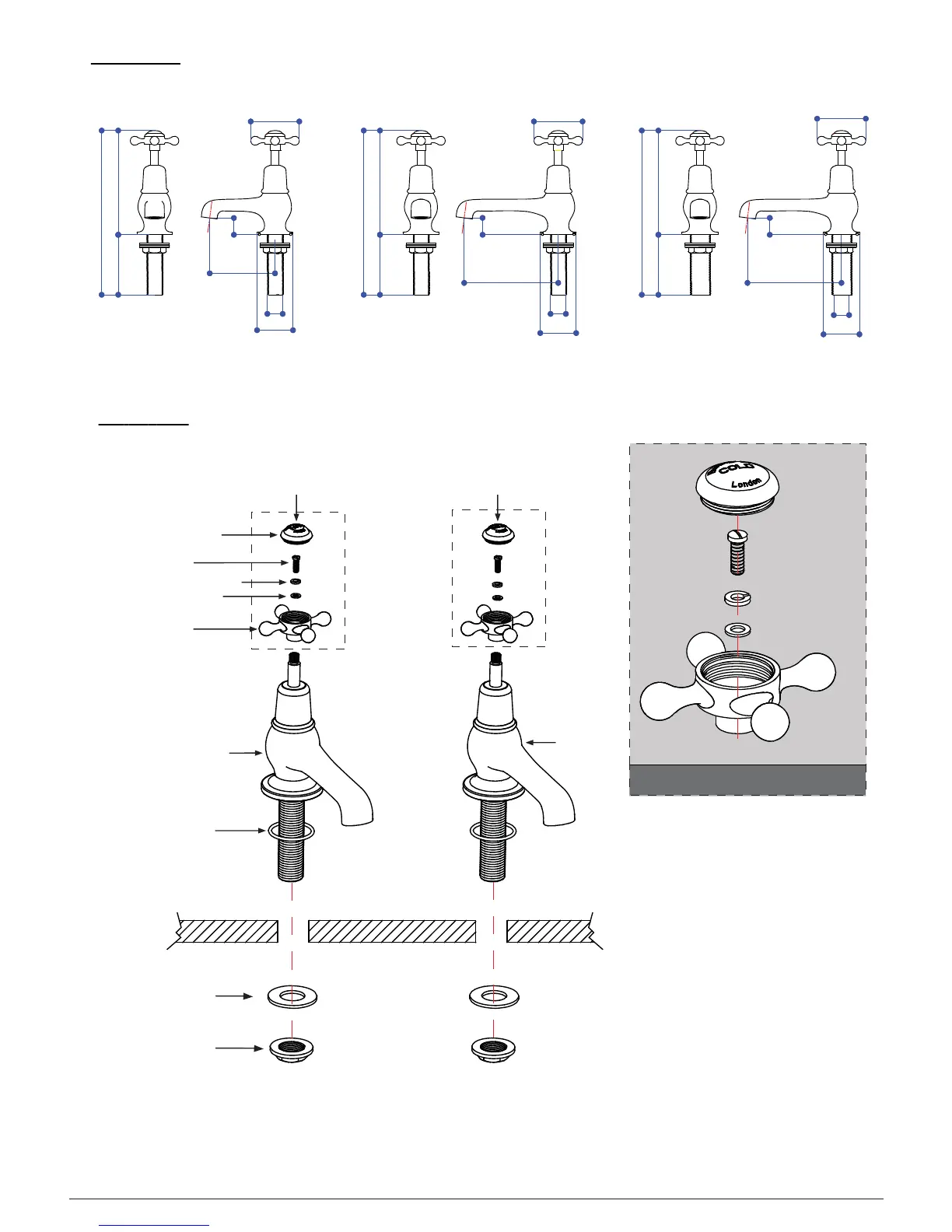 3. Insert the tap body into the hole on the basin (or bath) from above.