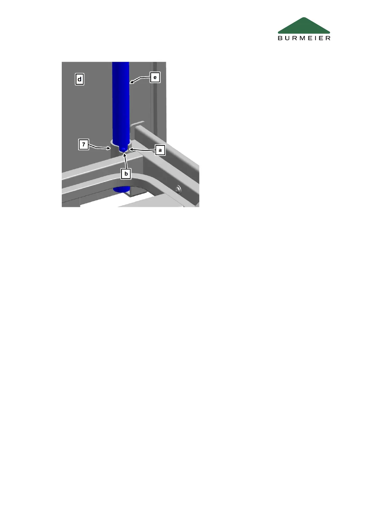 Insert the lifting pole in the sleeve. The metal pin [b] on the pole must be located in the