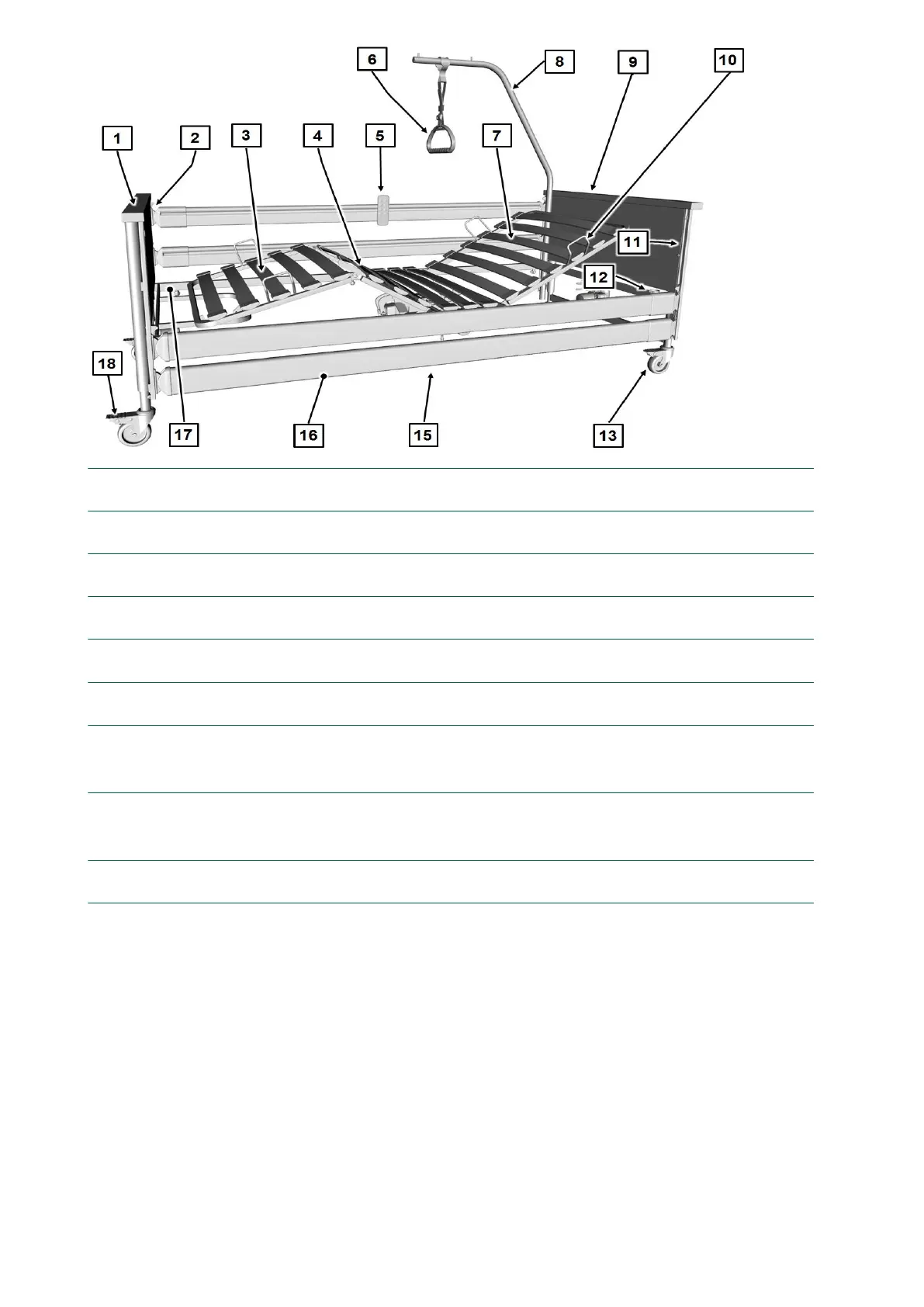 [17] Mattress base frame [18] Brake pedal