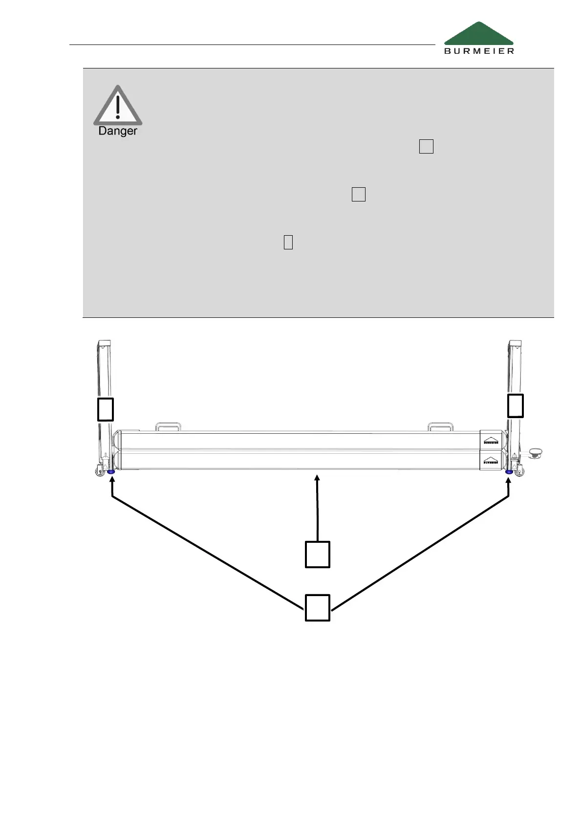 safety sides have been lowered 2 , feet must be kept clear of the