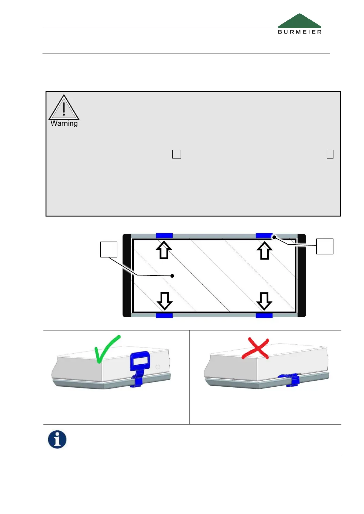 • Always lay the mattress 1 between the 4 lateral mattress retainer bars 2