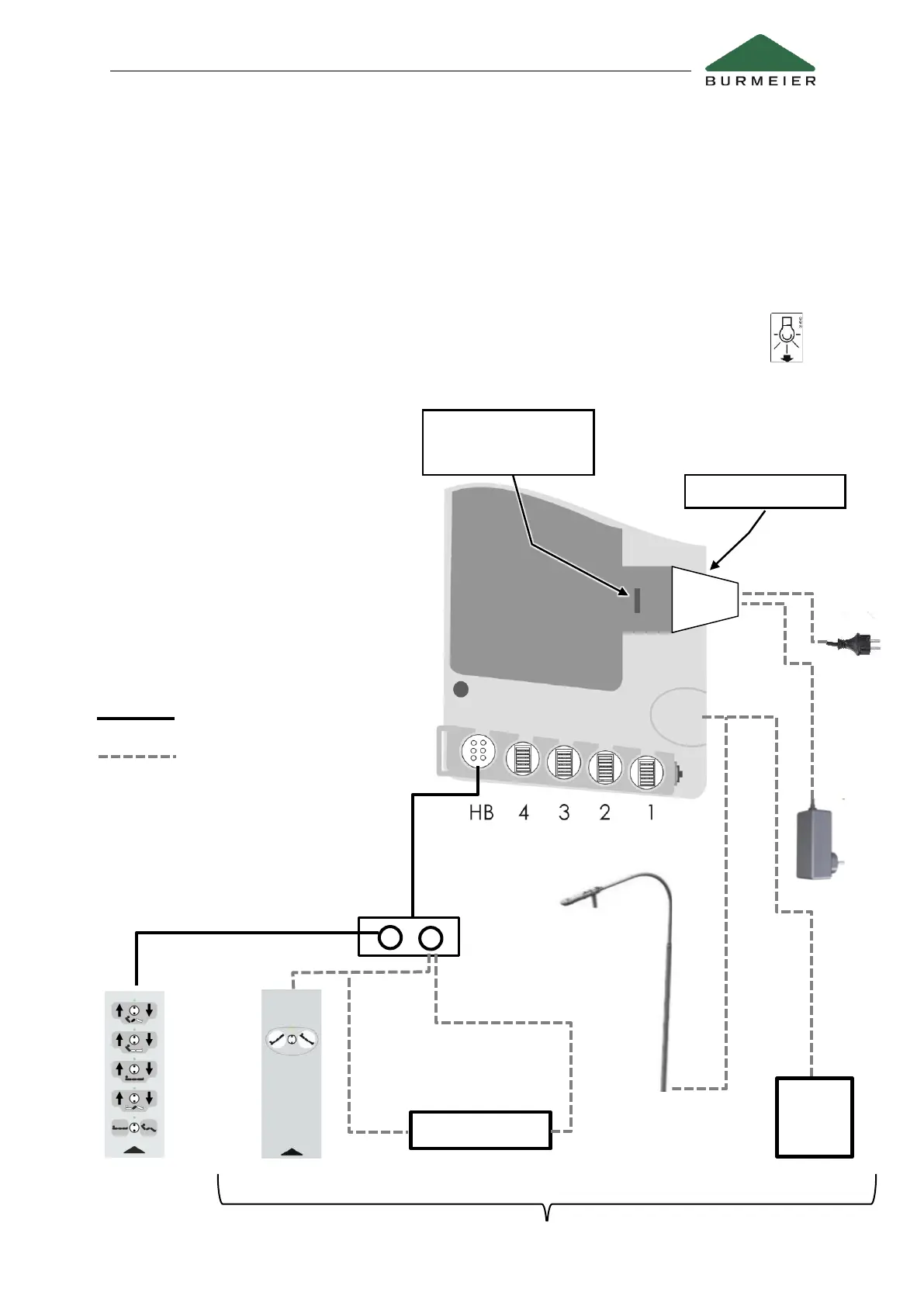 • Via junction box MJB2: additional handset for setting Trendelenburg/reverse-