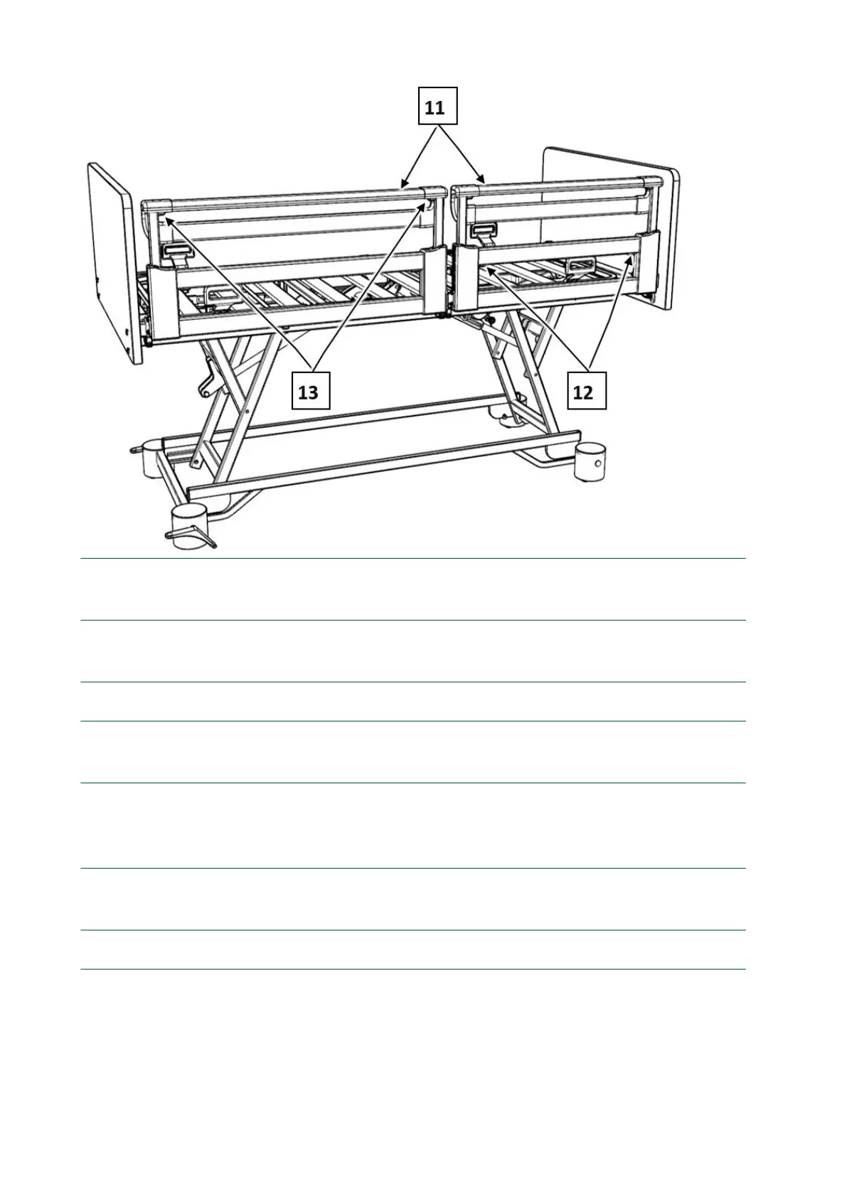 Regia care bed with telescopic safety sides (TSG) (optional equipment)