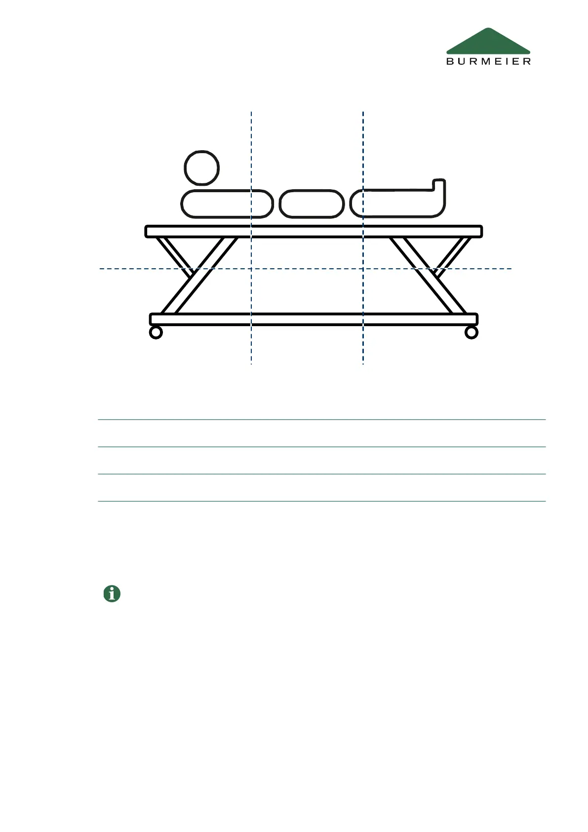 A: Head end, high up B: Centre of bed, high up