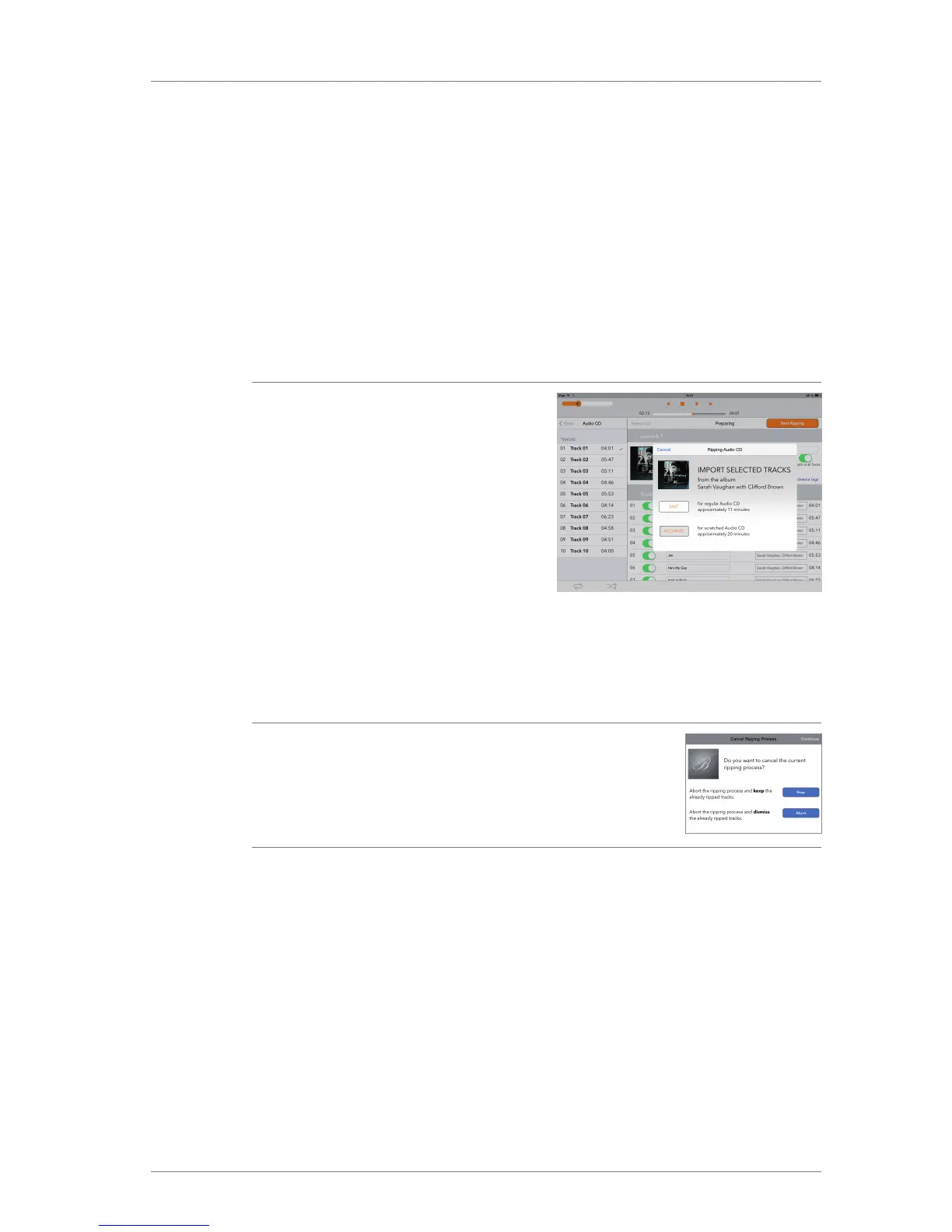 e. Tracks: You can edit the title and artist for each track separately (iPad® app: if you