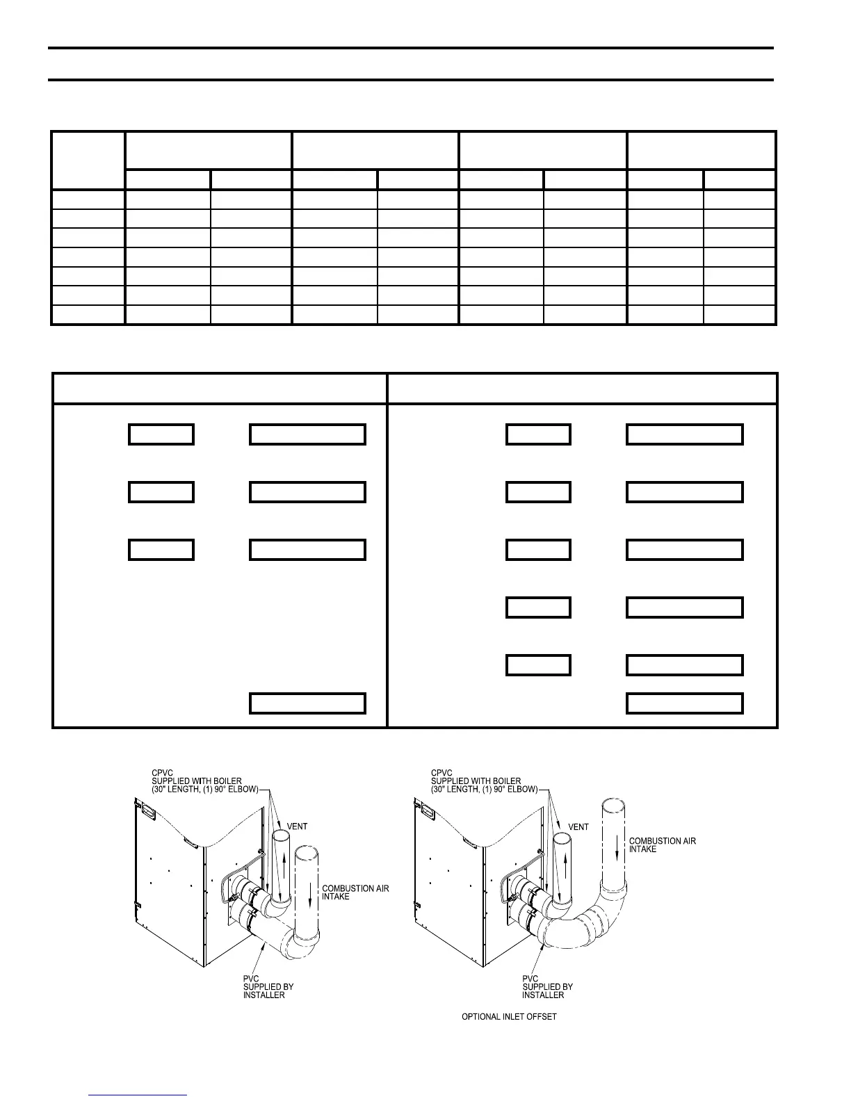 Table 7: Vent/Combustion Air Pipe Length – Two-Pipe Direct Vent System Options (CPVC/PVC and Stainless