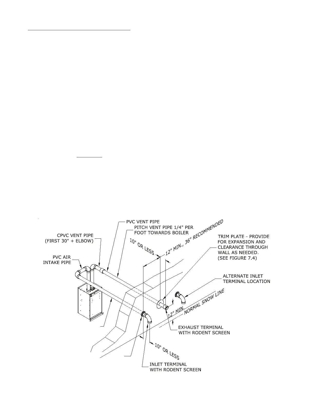 intake terminal. Horizontal separation: Recommended: 36”, Minimum: 12”, Maximum: none. Minimum horizontal