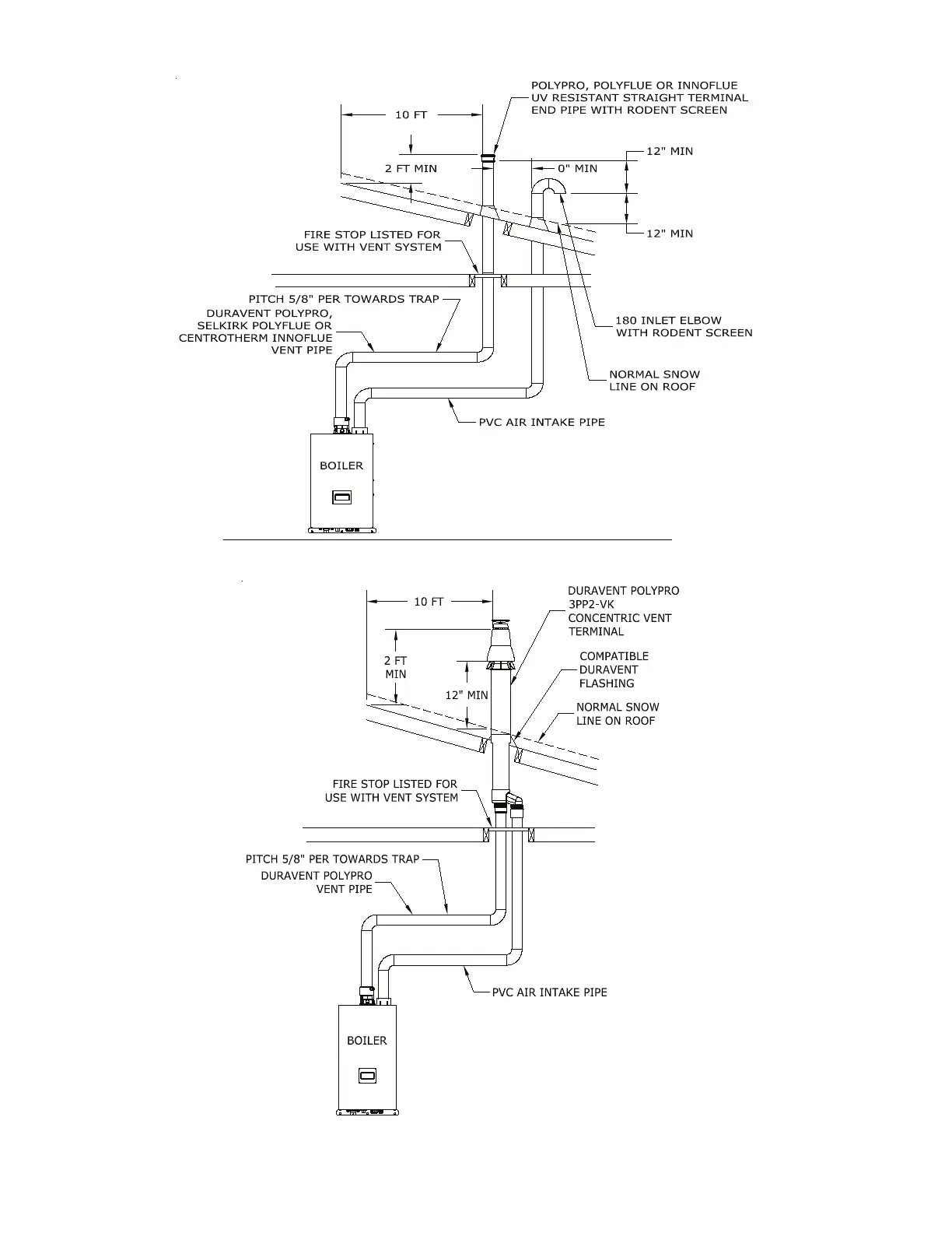 Figure 7.17: Duravent PolyPro, Selkirk Polyue or Centrotherm InnoFlue Vertical Single Wall PP Venting