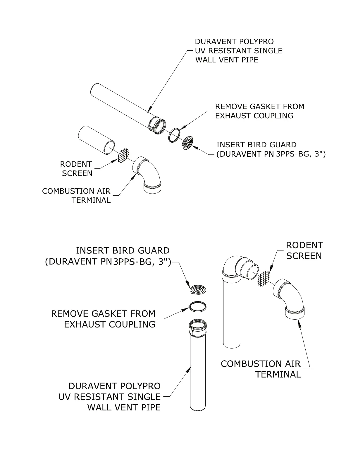 Figure 7.36: Installation of Duravent PolyPro UV Resistant Single Wall Horizontal Terminal