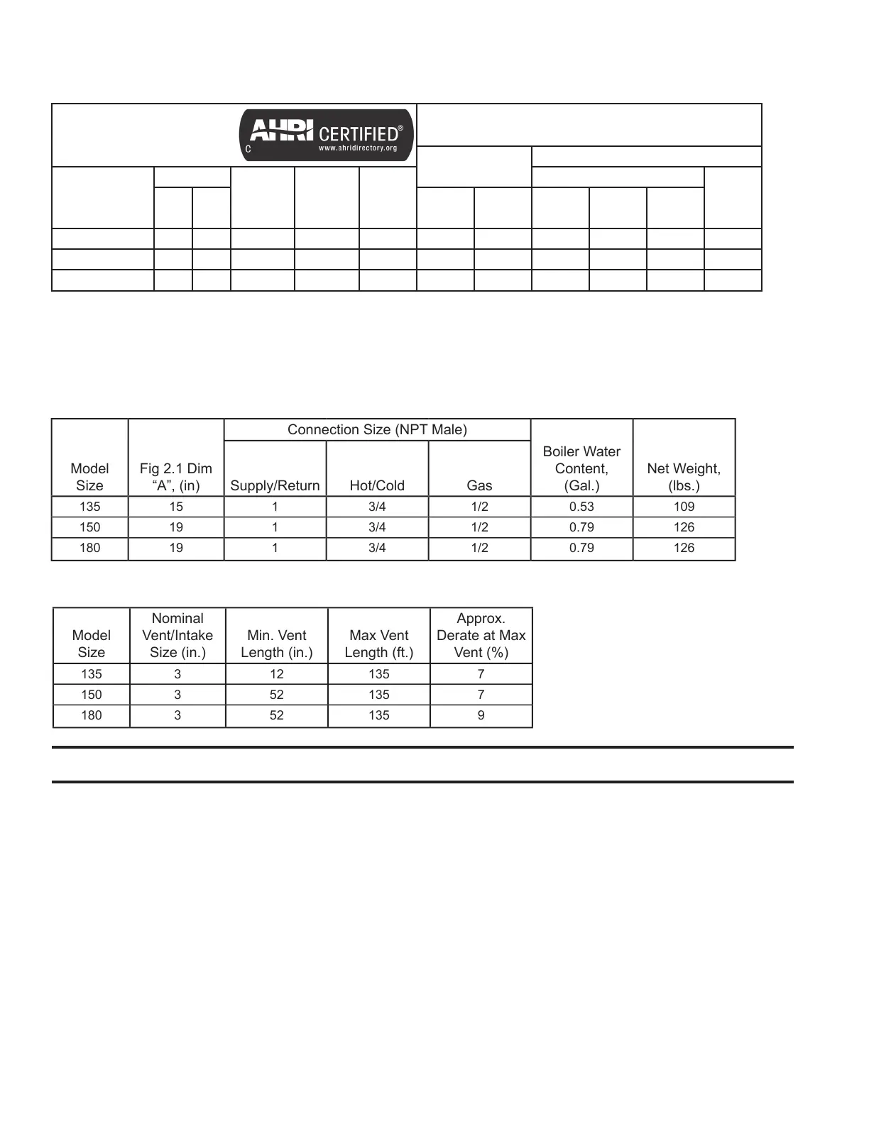 2) The Net AHRI Water Ratings shown are based on a piping and pickup allowance of 1.15. The manufacturer should be consulted before selecting a boiler for