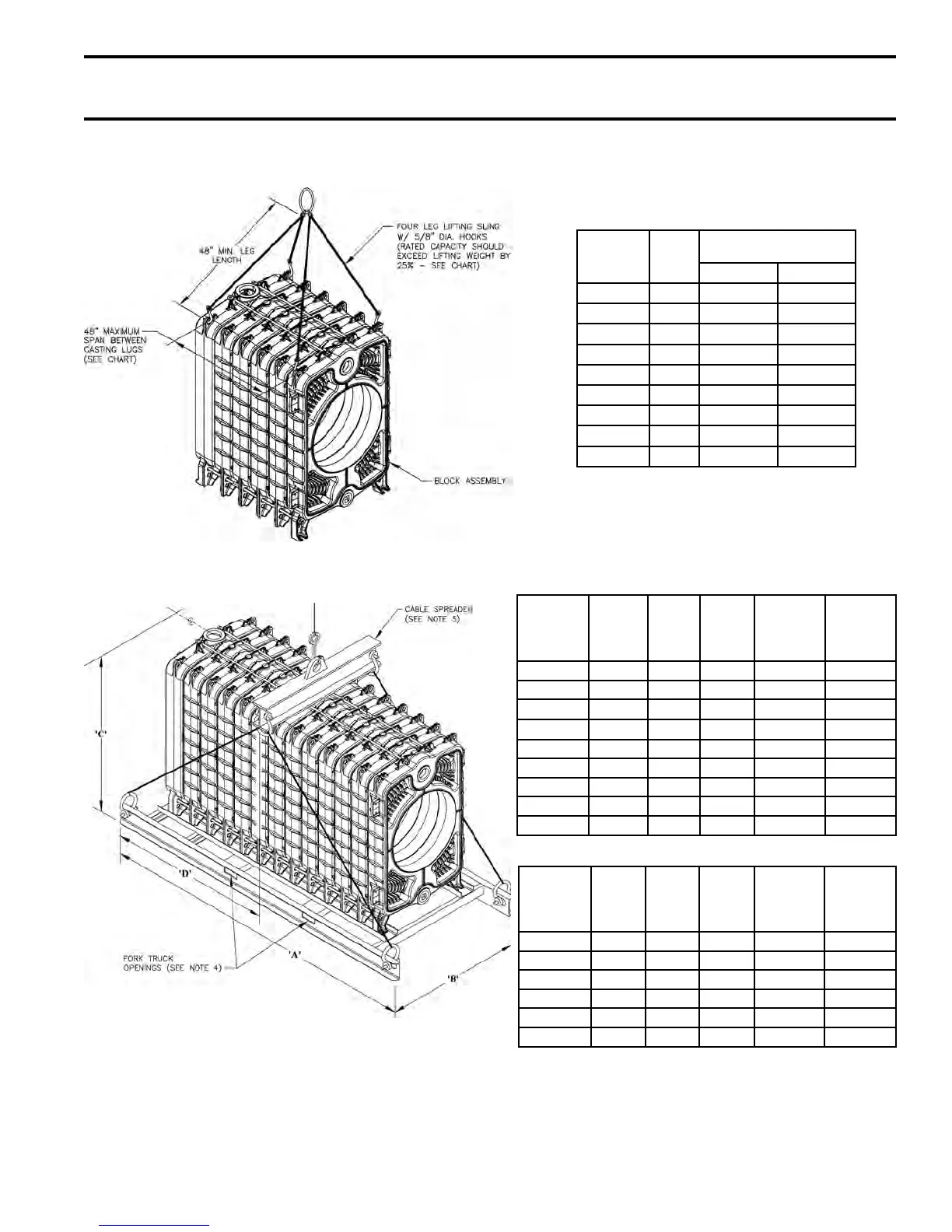 5. Cablespreader is to prevent casting damage. Spreader width should equal B (width of skid) +12”.