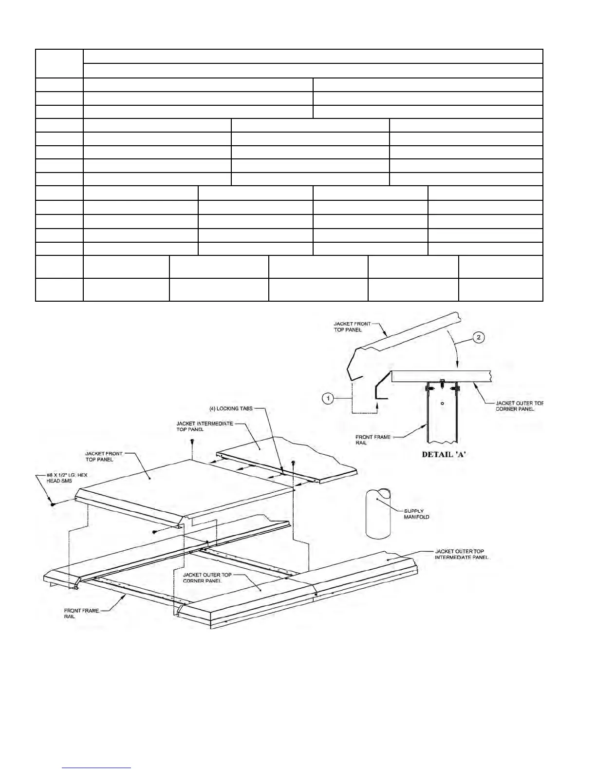Table XI: Jacket Top Panel Arrangement