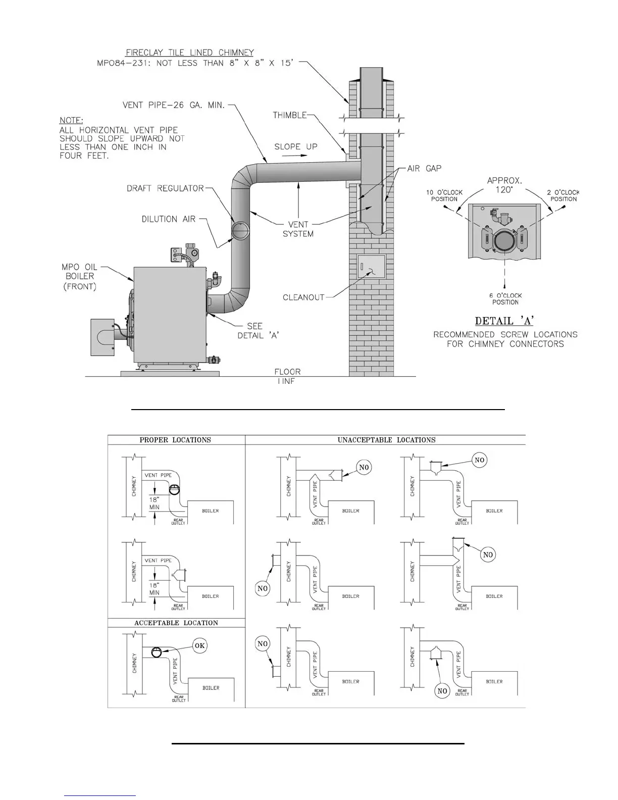 Burnham MPO - Recommended Vent Pipe Arrangement and Chimney Requirements; Proper and Improper Locations of Draft Regulator