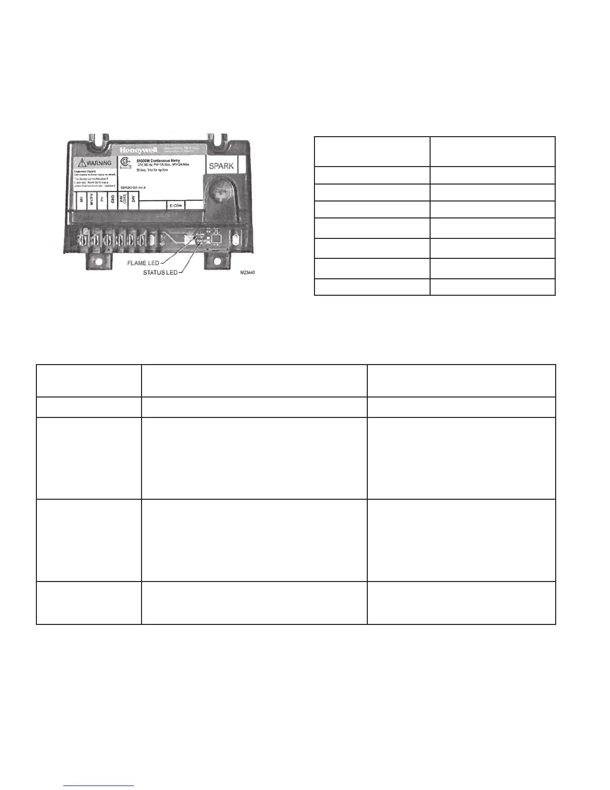 LED indicates the status of the ame, see Table 11.