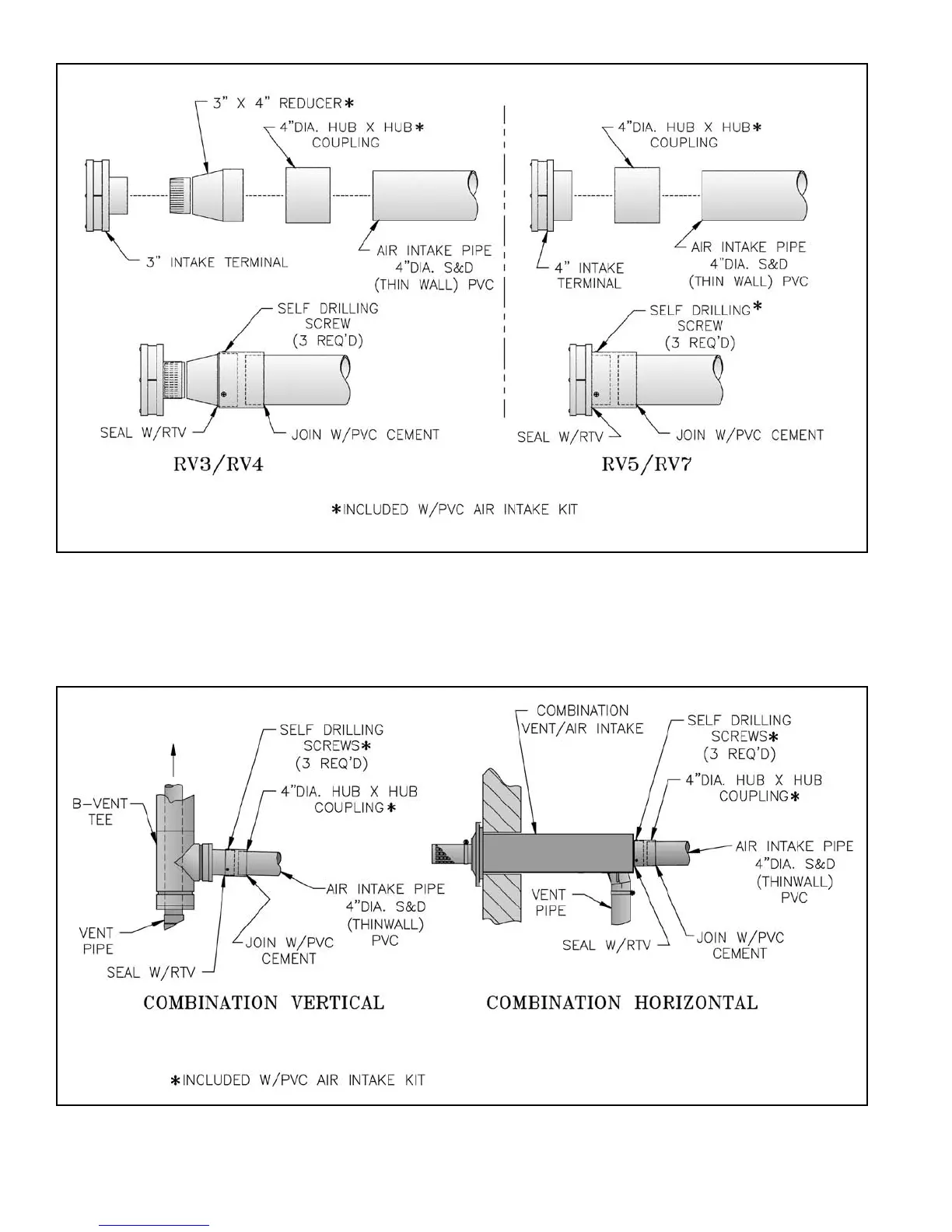 Burnham Revolution - Separate Horizontal;Vertical Air Intake Terminal Installation; Combination Horizontal;Vertical Air Intake Pipe Installation