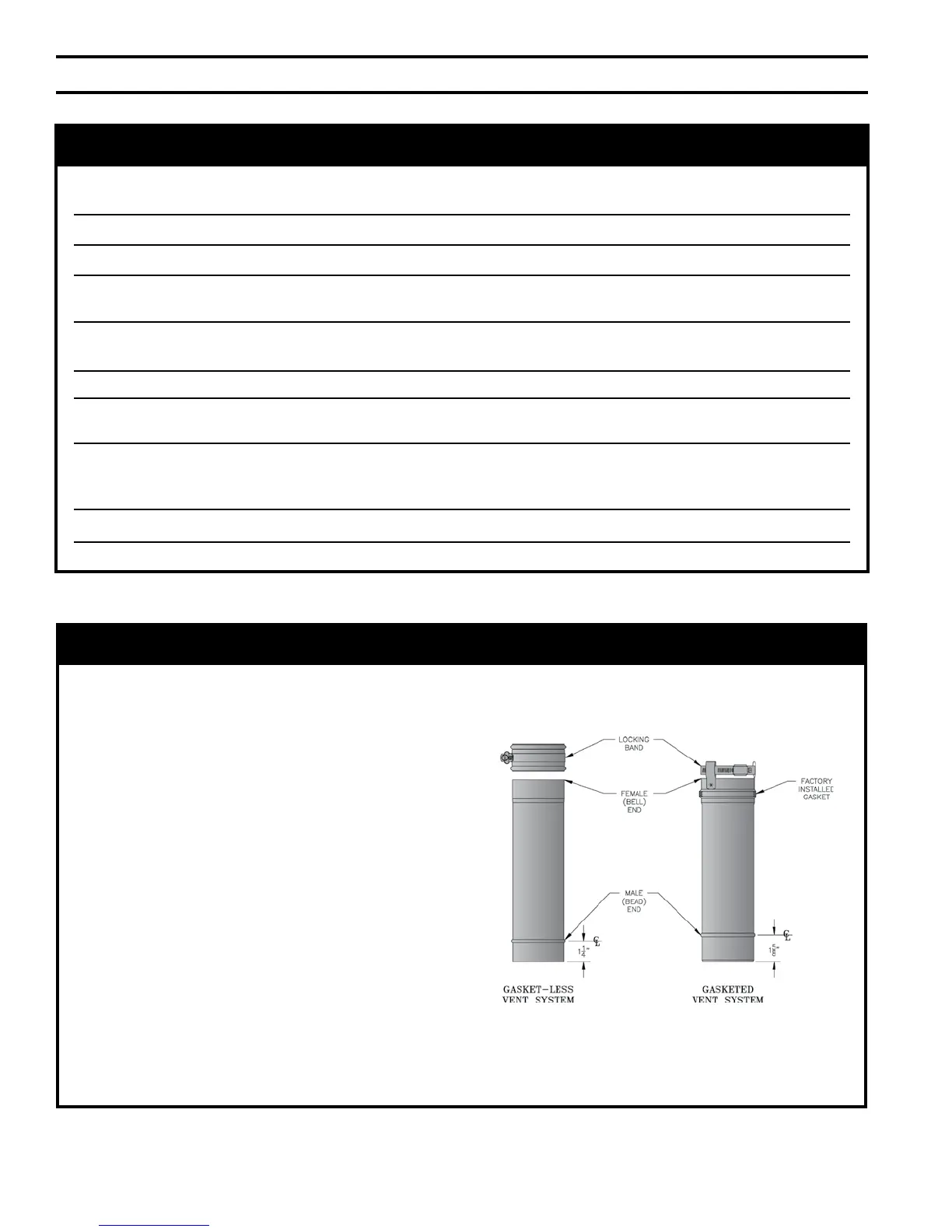 Each gasket-less vent component is supplied with a clamp band and sealant.