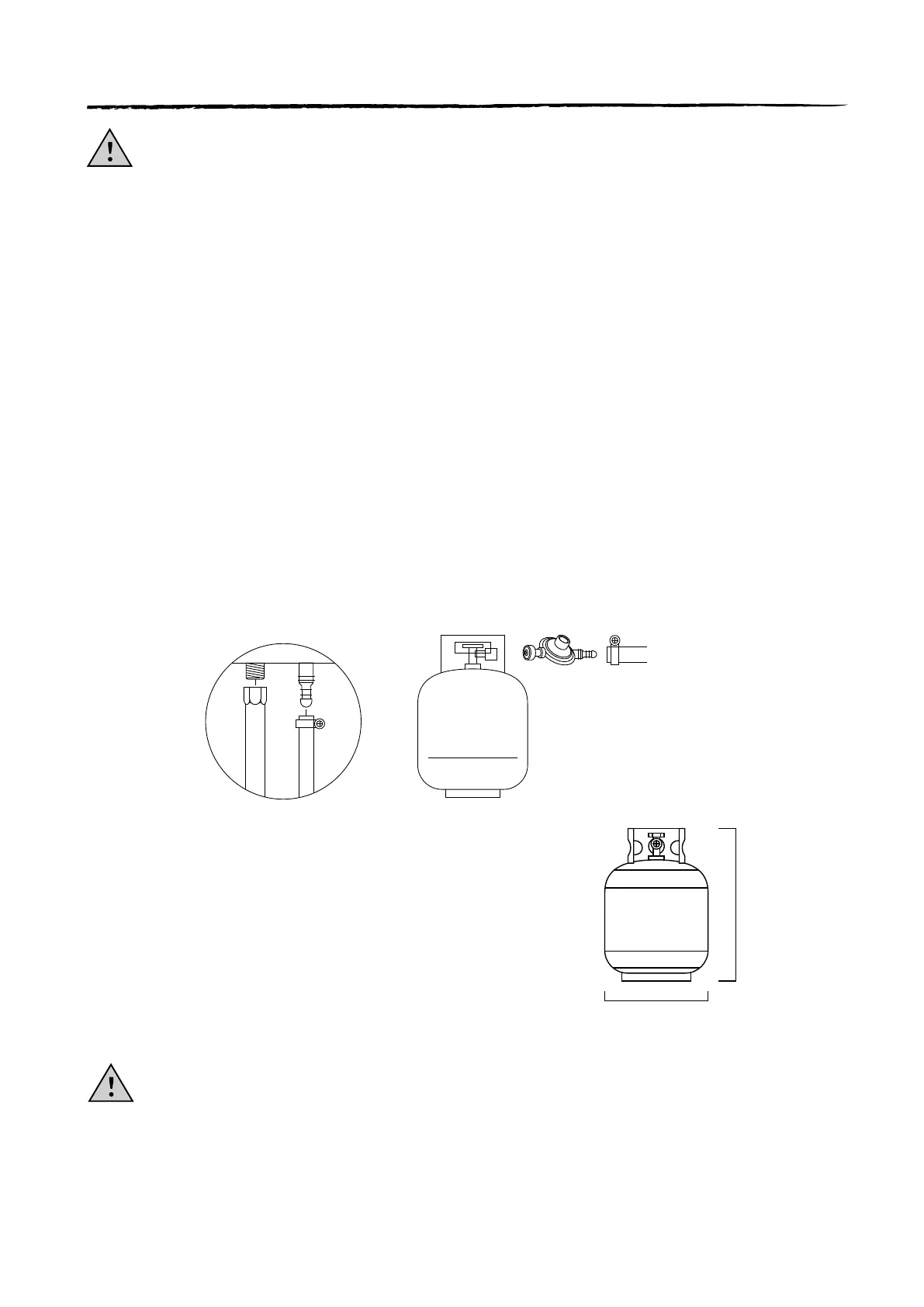 WARNING: Never connect new or not completely empty gas cylinders if there are ignition sources in the