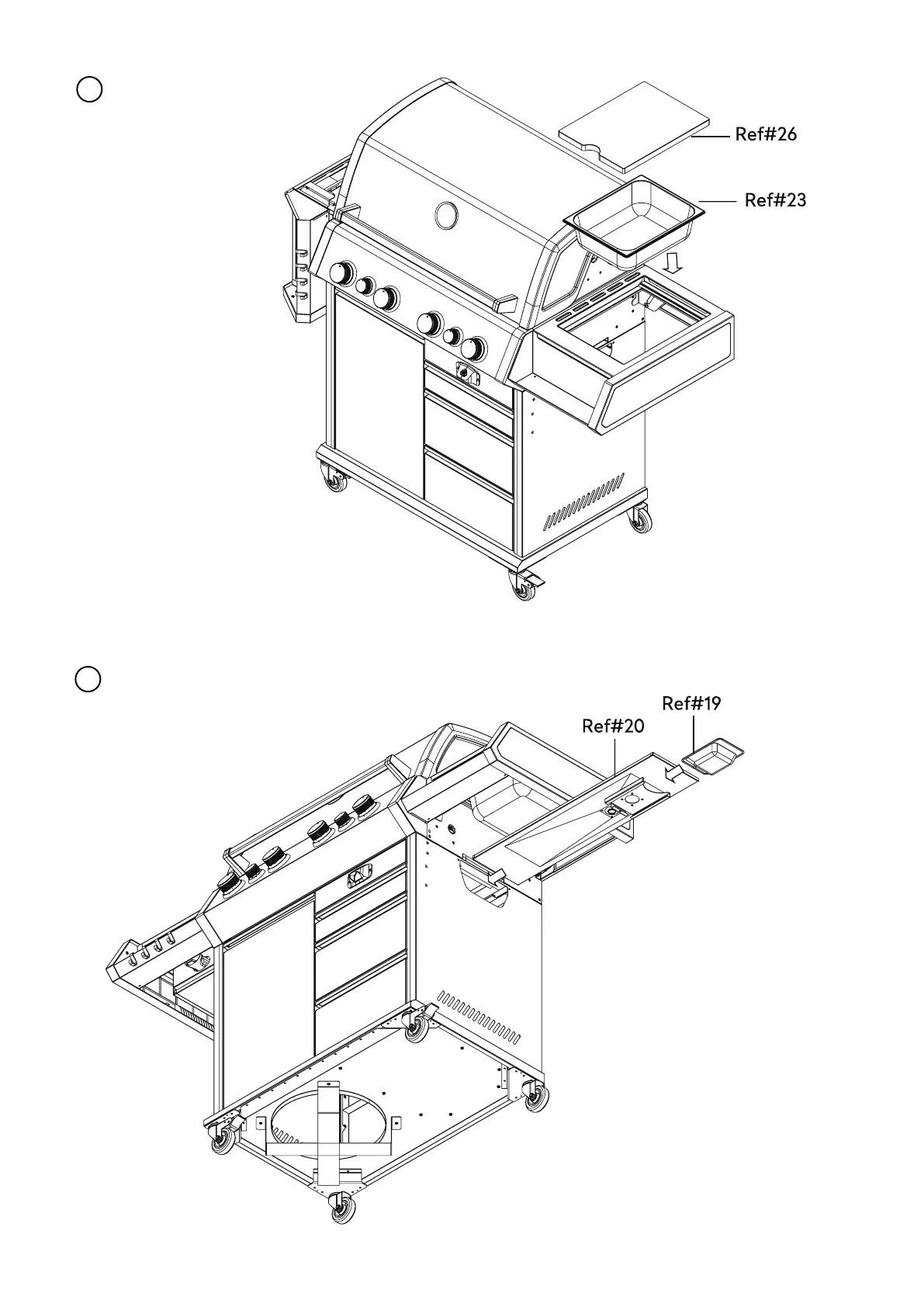 BURNHARD EARL - Assembling the Gas Grill (Part 8); Step 14: Placing Food Container and Cutting Board; Step 15: Installing Drip and Drain Trays