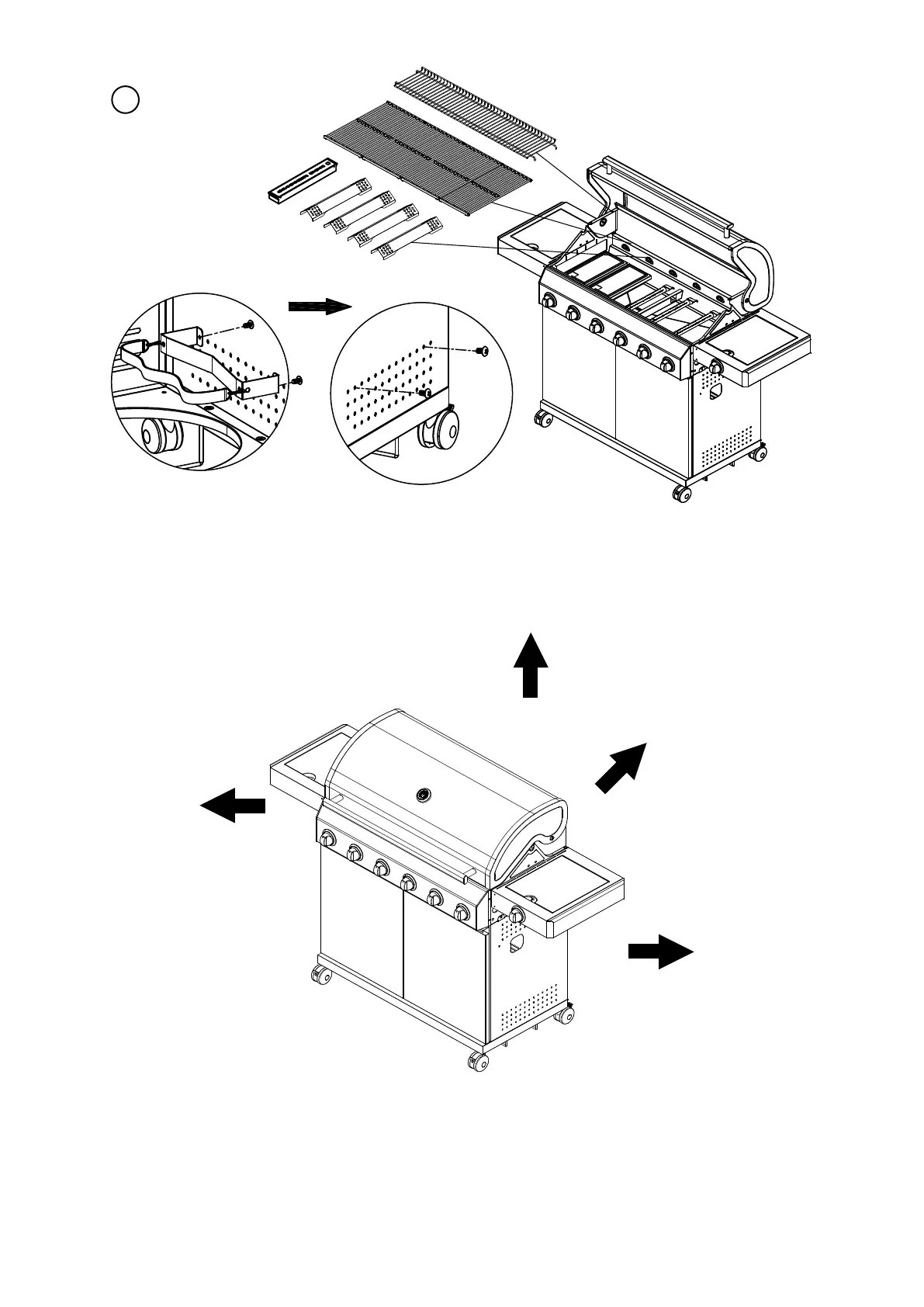 CAUTION: The grill radiates heat. Never pace the grill next to gass windows, walls, pants, etc. The grill