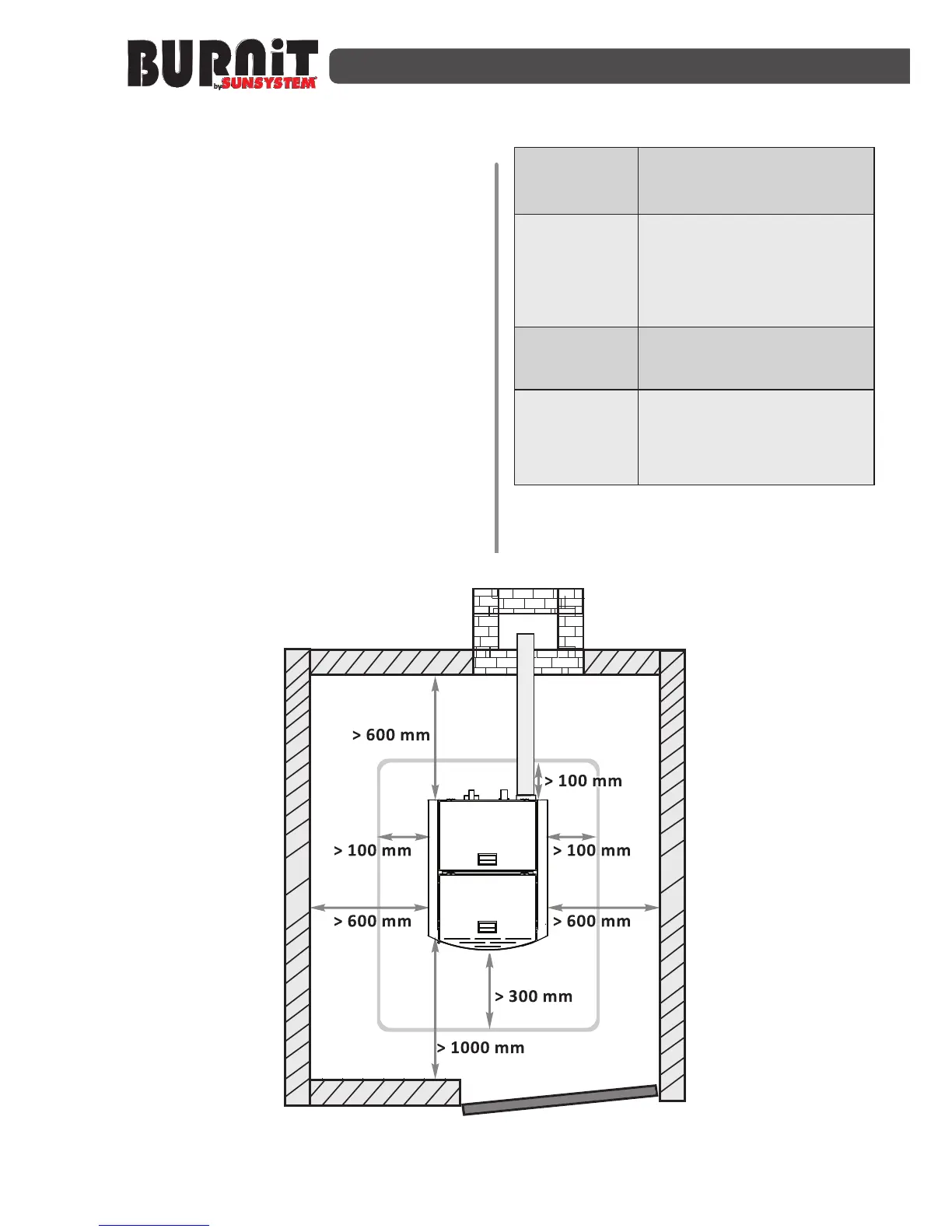 Diagram1. Recommended clearances between boiler and walls.
