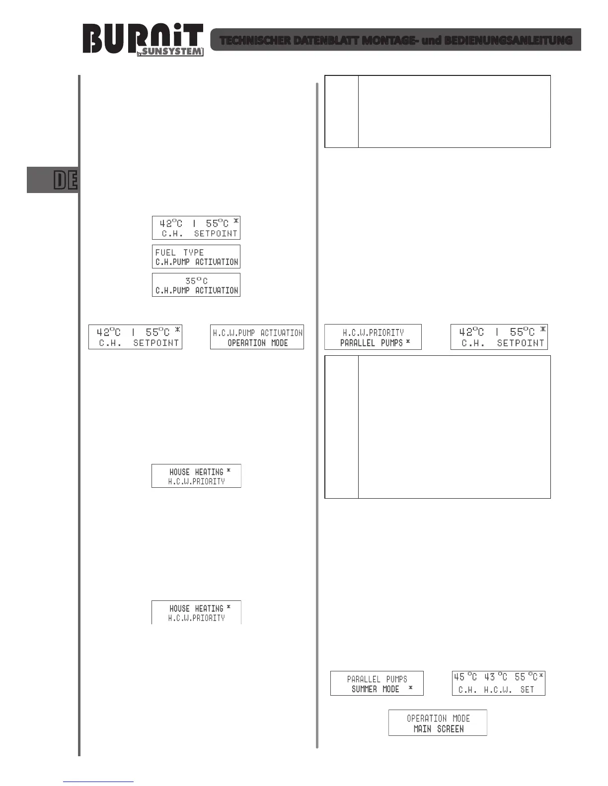 wird die Pumpe für Zentralheizung eingeschaltet. Die