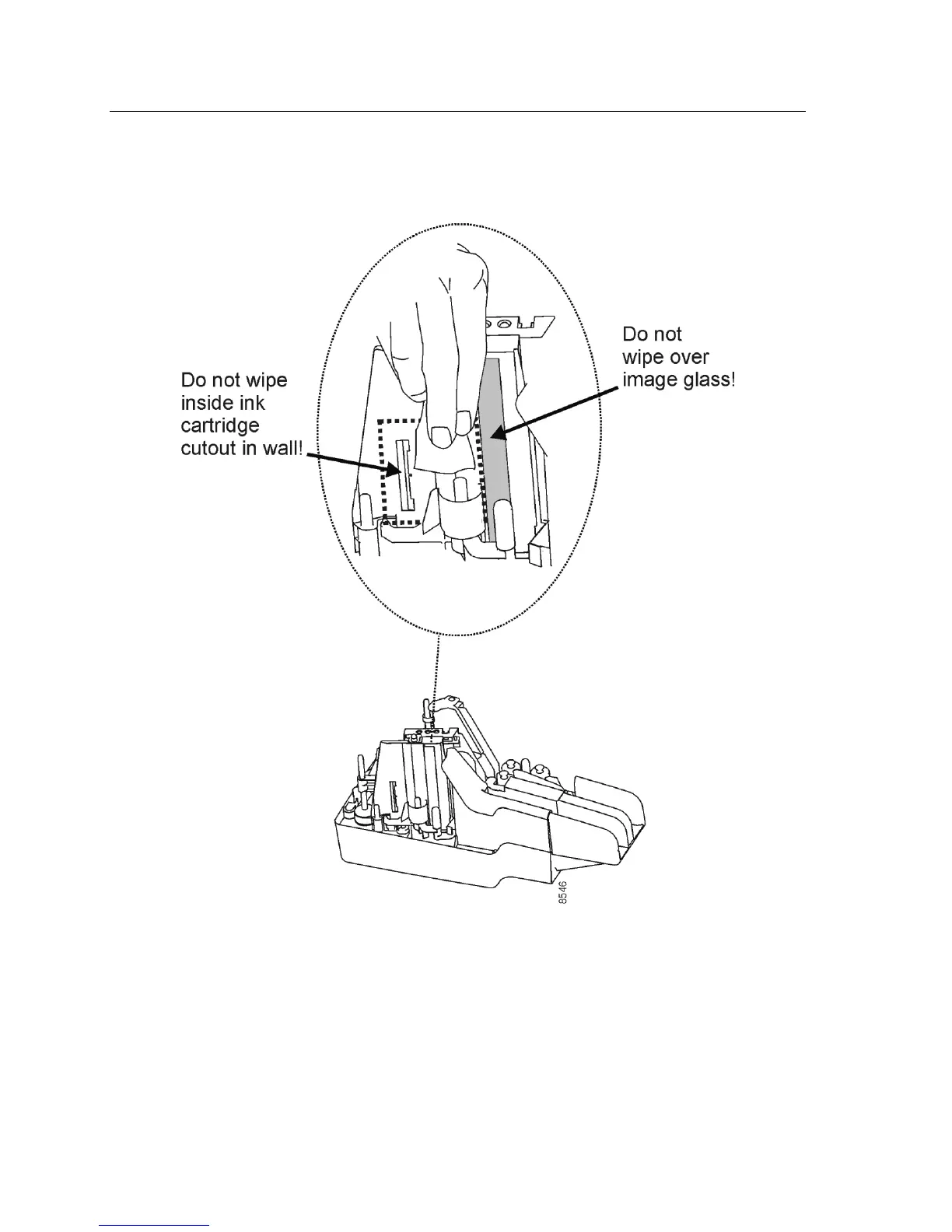 Clean the area indicated in the picture below, but do not wipe with the pad inside