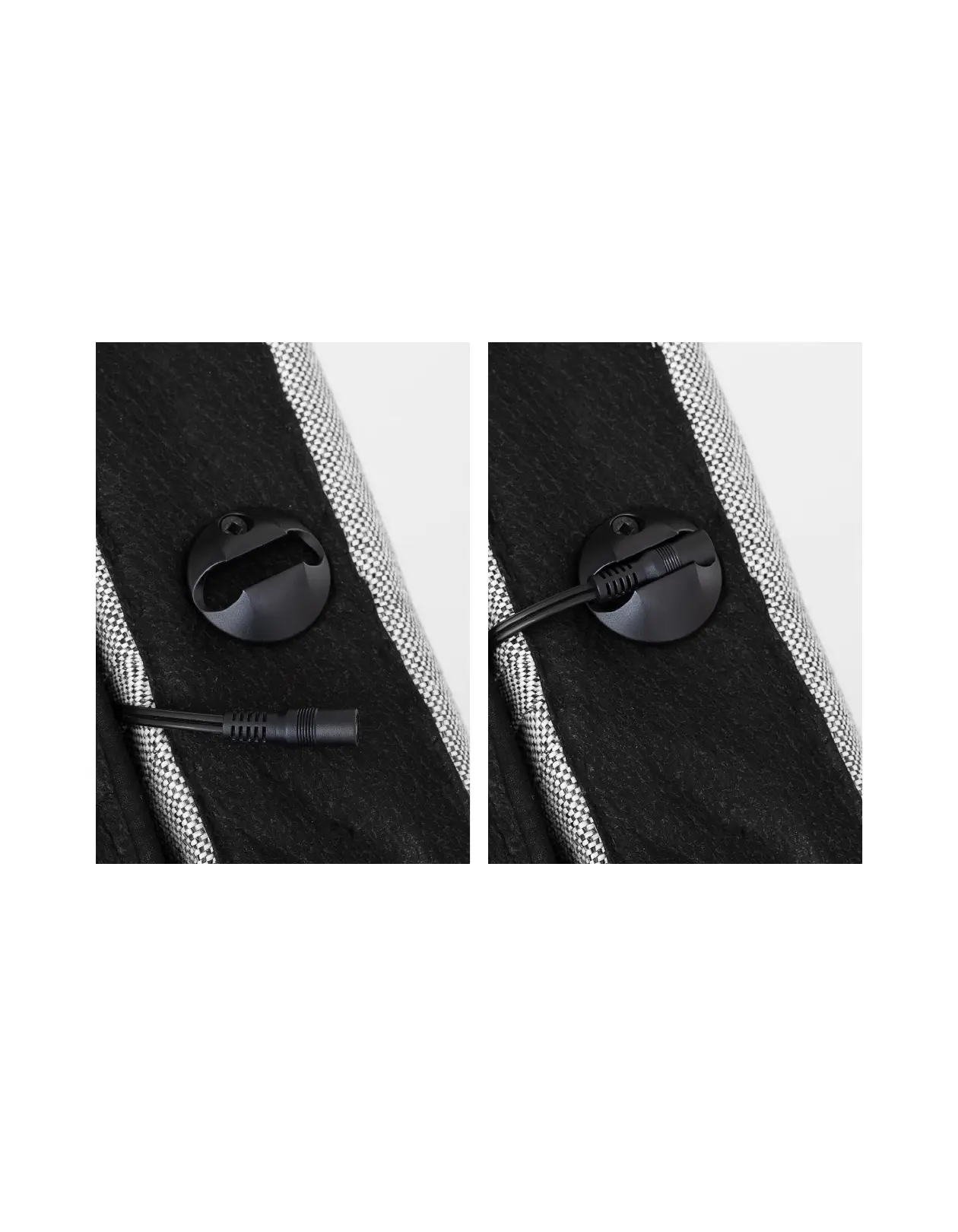 To use the built-in USB chargers, unclip the cord from