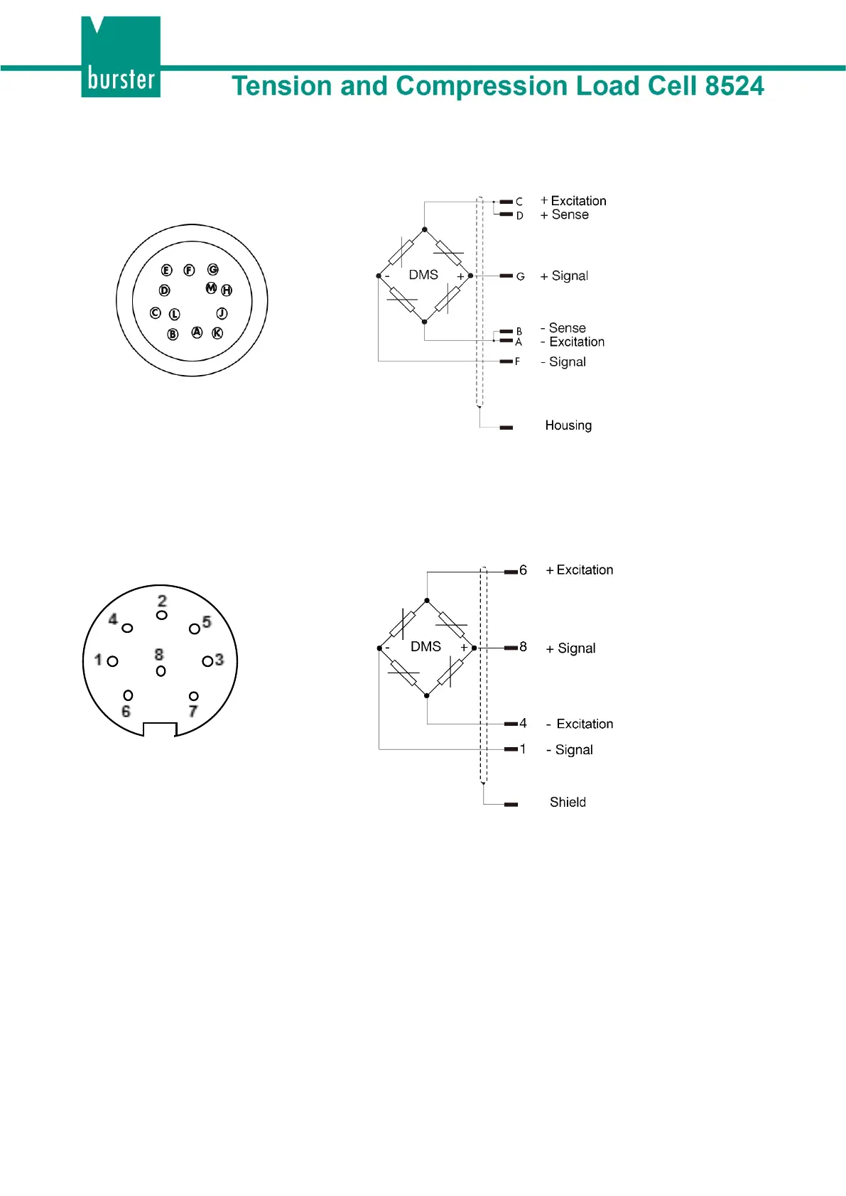 Connection to burster devices with 12-pin round connector.